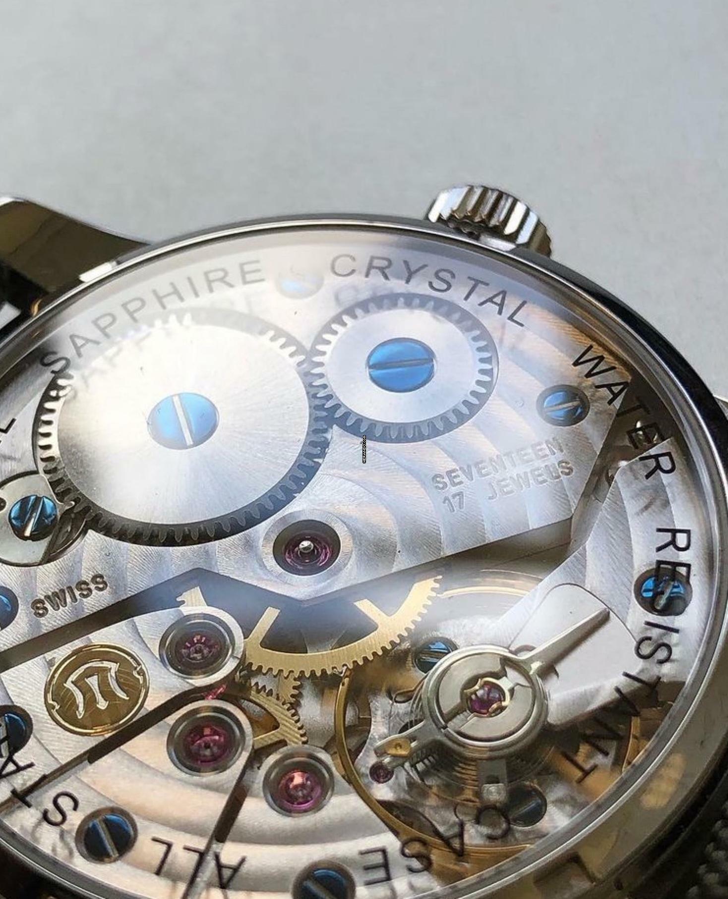 Movement: Basis - caliber 6497 specially created refinement of the movement components, Geneva stripes, berilium bronze balance with swan neck regulation, large ruby bearings, blued screws