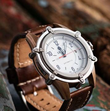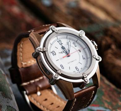 Gehäuse: Bronze mit Lünette und Boden aus Titan