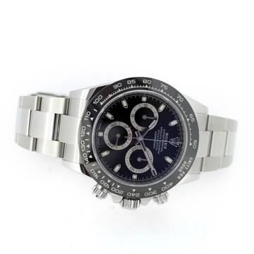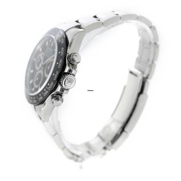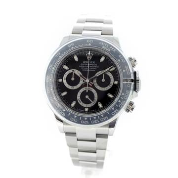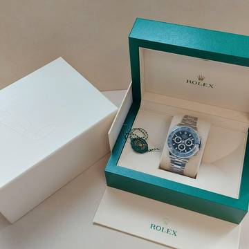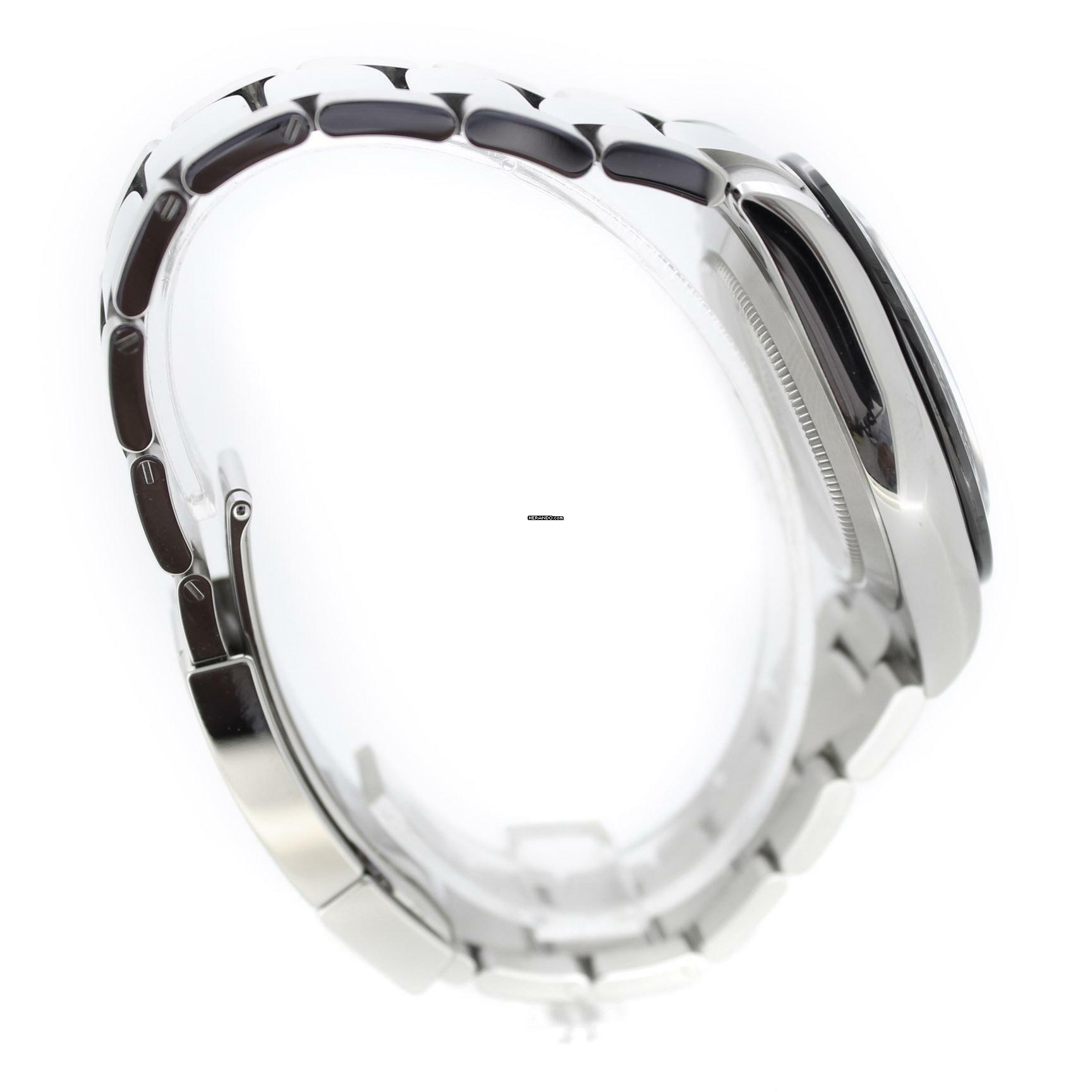 Diese Rolex-Uhr verfügt über ein 40 mm Stahlgehäuse. Die Uhr verfügt über ein schwarzes Zifferblatt. Die Uhr ist mit einem Stahlband ausgestattet.