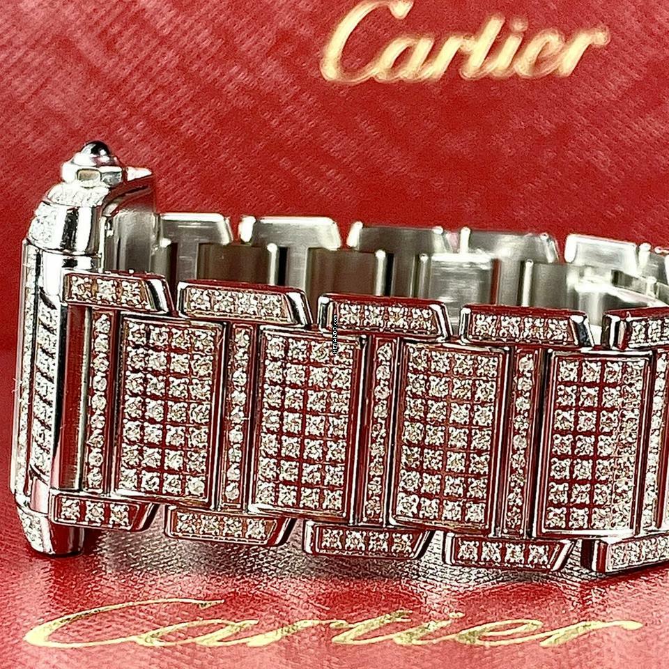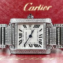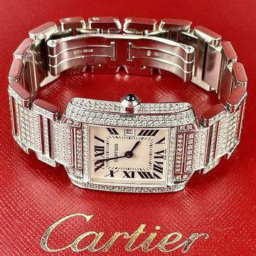 Authentische Pre Owned cartier tank francaise Quarz 20mm Stahl ~6TCW Voll Diamant Uhr In Cartier-Box. Poliert. Läuft genau