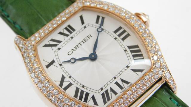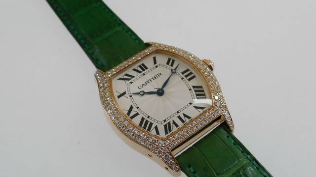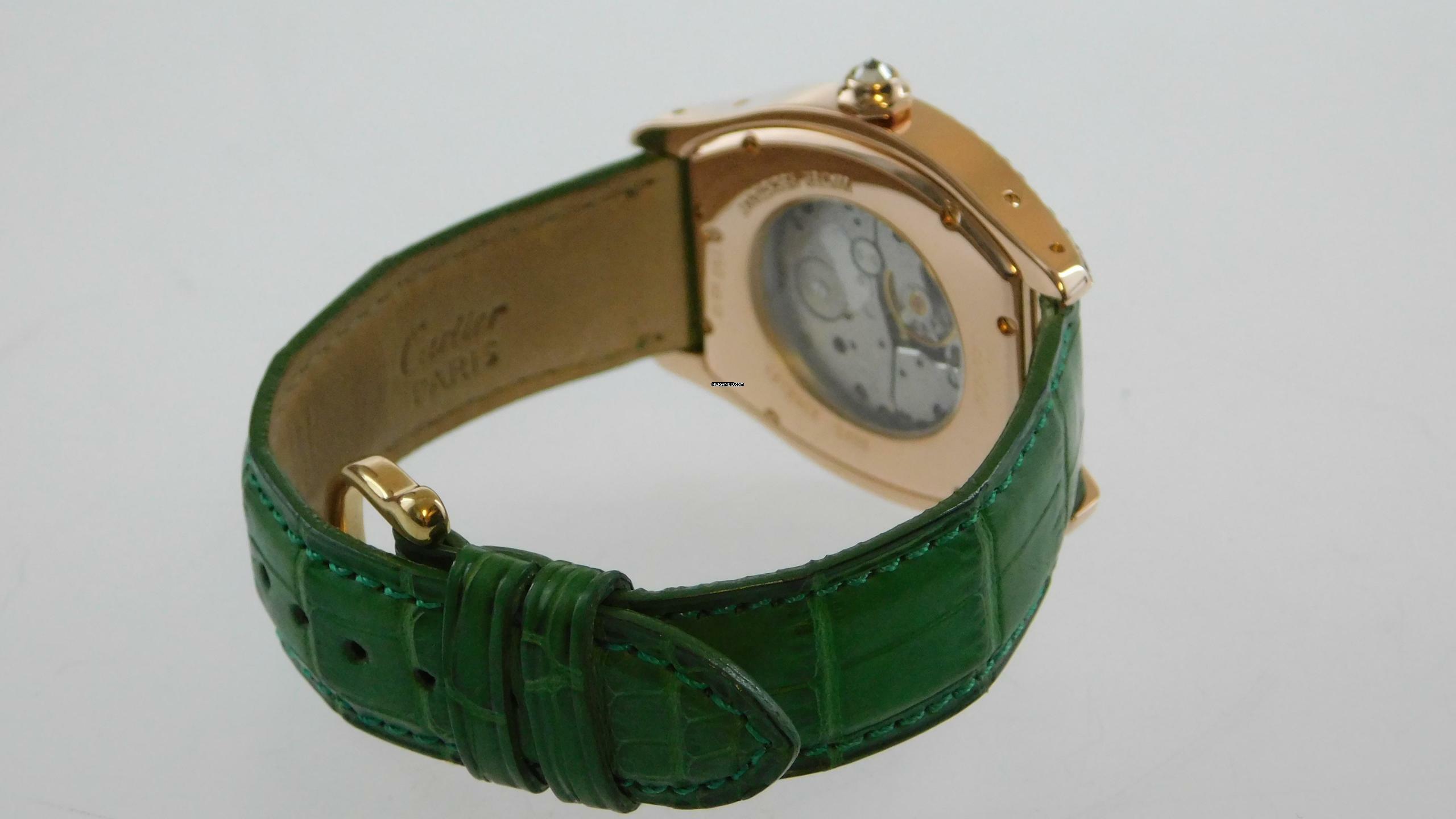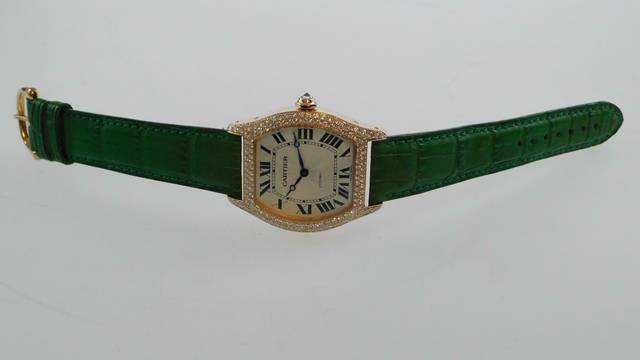 Cartier Tortue 18 Karat Rosegold Tortue XL Herrenuhr Handaufzug mit original Brillant Besatz 34 x 43 mm