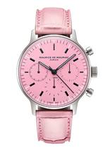 Wir tauschten für die Special Edition zum Pink October das für diese Uhr so typische rote Uhrenglass aus gegen eines in zartem Pink. Auch das Zifferblatt und das Uhrenband strahlen in Pink.» Das charakteristische Design der L-Serien von Maurice de Mauriac – L1, L2 und L3 – stammt vom renommierten Schweizer Designer Fabian Schwaerzler. «Die L3 Cherry Blossom soll gleichsam Statement sein für die, die Betroffenen Mut machen wollen, wie auch die, die den Kampf mit der Krankheit angenommen haben», ergänzt Massimo Dreifuss.