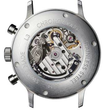 Zifferblatt: 3 Uhr: Chronograph Minutenanzeige; 6 Uhr: Chronograph Halbestunde; 9 o’clock: Sekundenanzeige