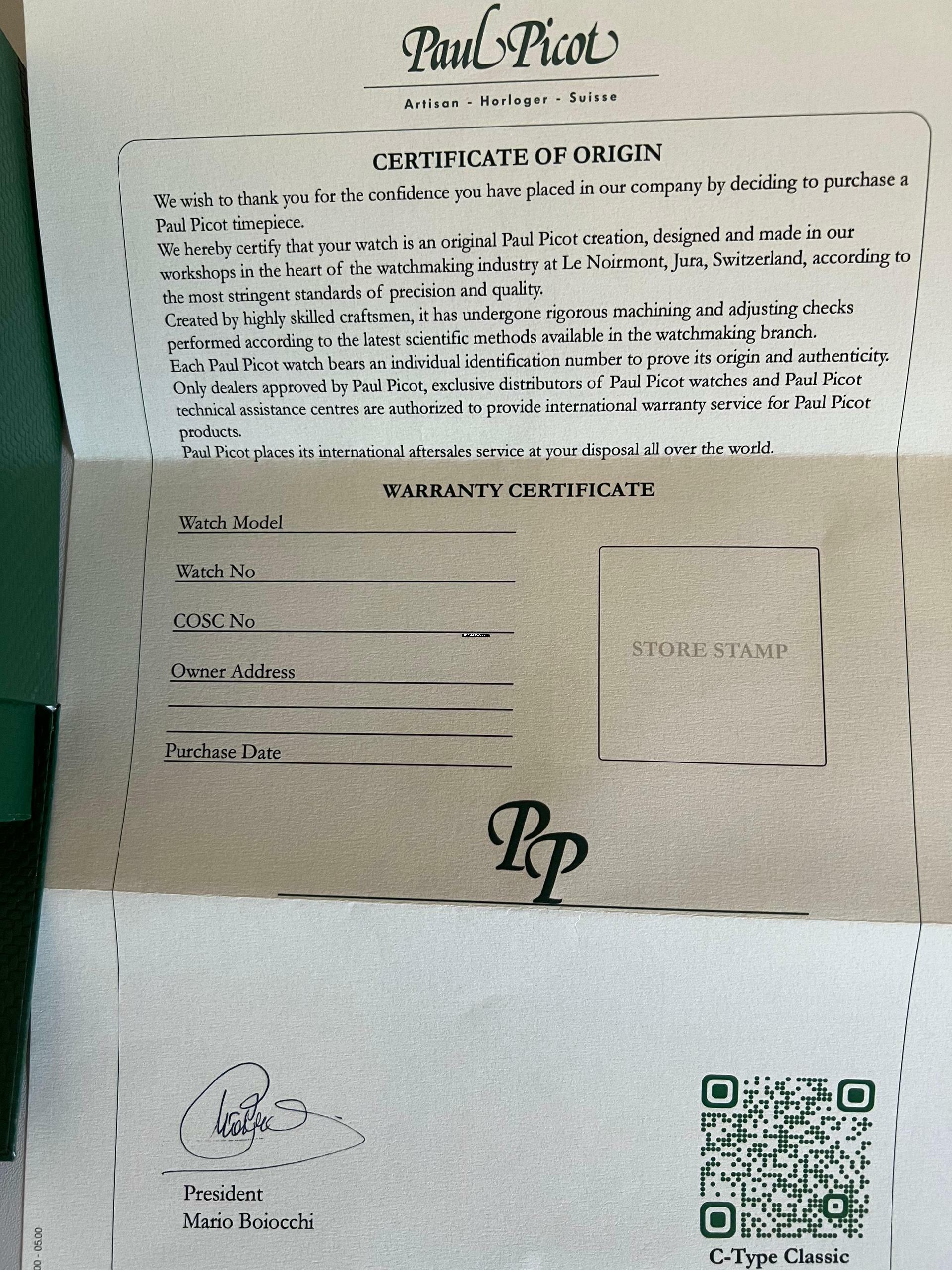 Sonderaktion für Paul Picot c-Type. Uhr ist fabrikneu mit Werksgarantie und versandfertig. Lp: 3.780 €