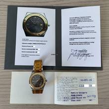 Uhr Audemars Piguet Original in jedem seiner Teile, sehr selten, Übergangsmodell zwischen der Referenz 4100 und der 14790, überholt in ausgezeichnetem Zustand, keine oder kaum sichtbare Gebrauchsspuren, komplettes Set (Box, diverses Zubehör, Garantie Audemars Piguet Original der Epoche, offizieller Service Audemars Piguet von Mai 2023, offizieller Auszug aus dem Archiv Audemars Piguet von April 2023, Garantie/Verkaufserklärung unser Geschäft gültig 12 Monate.