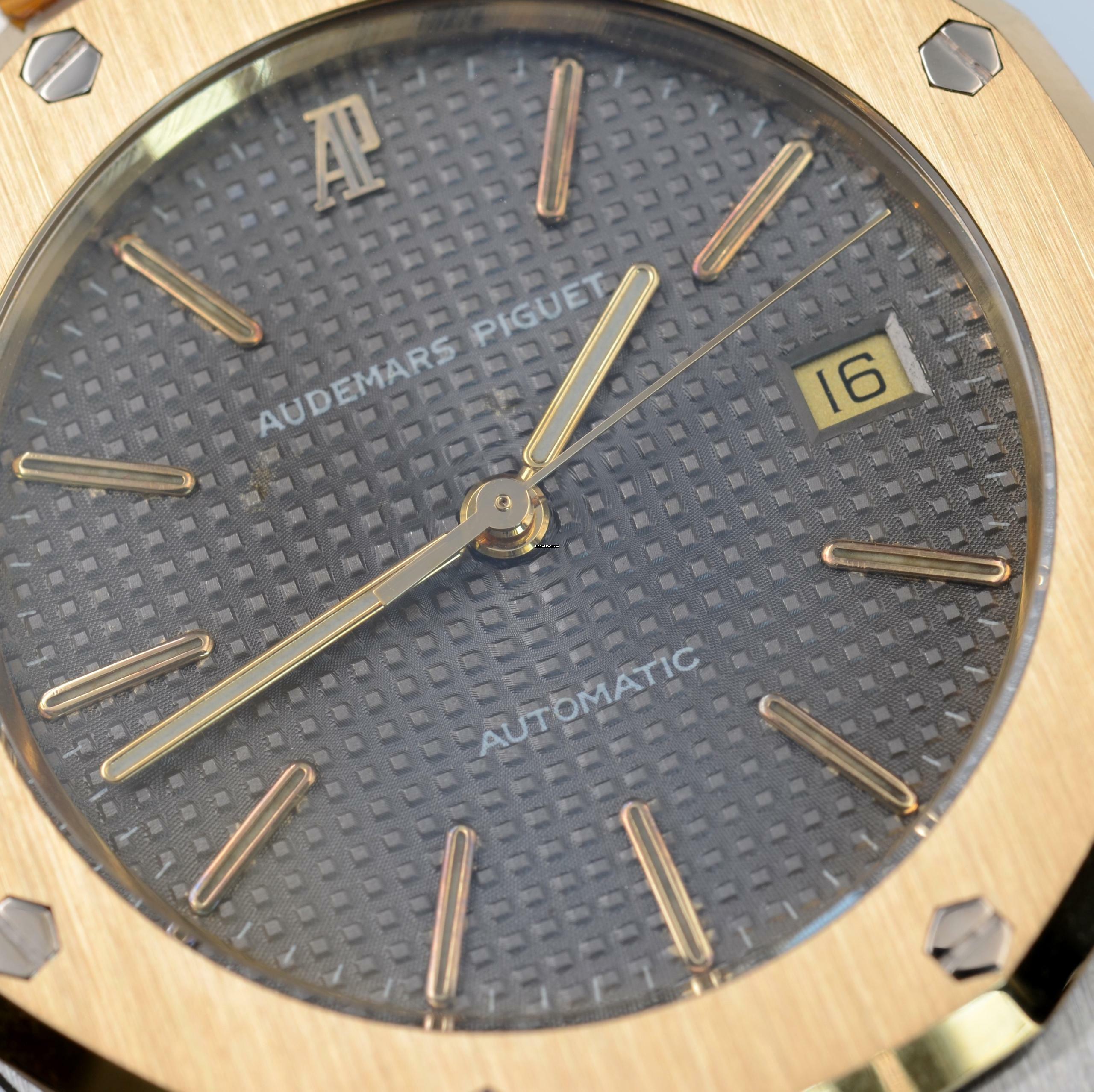Uhr Audemars Piguet Original in jedem seiner Teile, sehr selten, Übergangsmodell zwischen der Referenz 4100 und der 14790, überholt in ausgezeichnetem Zustand, keine oder kaum sichtbare Gebrauchsspuren, komplettes Set (Box, diverses Zubehör, Garantie Audemars Piguet Original der Epoche, offizieller Service Audemars Piguet von Mai 2023, offizieller Auszug aus dem Archiv Audemars Piguet von April 2023, Garantie/Verkaufserklärung unser Geschäft gültig 12 Monate.