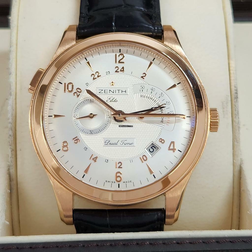 Zenith Elite Dual Time Grande Class Ouro Rosé 44mm Automático Completo