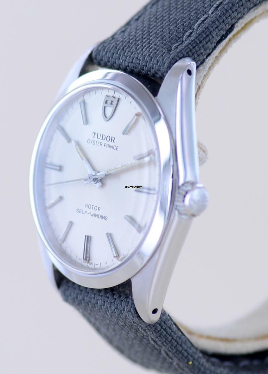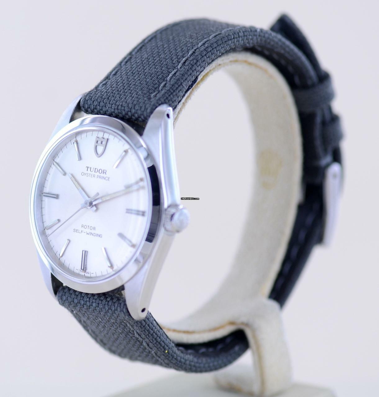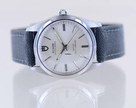 Sehr seltene schöne Tudor Oyster Prince Self Winding No Date mit der Referenz 90200. Dieser wunderbar erhaltene Vintage-Uhr hat noch das schöne silberne Zifferblatt mit applizierten Indizes und kommt im sehr schönen Zustand daher. Tritium auf Blatt und Zeigern sehr gut erhalten und wunderbarer Vintage Charme.Diese Uhr ist ein interessanter Klassiker und das Zifferblatt wirkt unter dem gewölbten Plexiglas hervorragend. Es gibt kaum ein vergleichbares reduziertes Blatt von Tudor und auch Rolex. Es trägt über den Zeigern das Tudor Wappen sowie Firmenname und den Zusatz Oyster Prince. Super geniale Patina.
