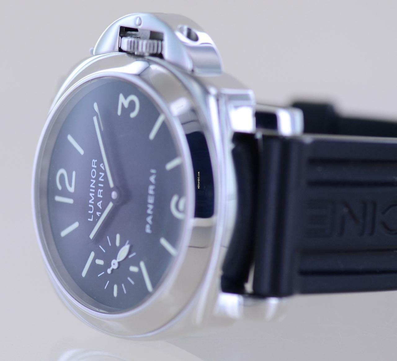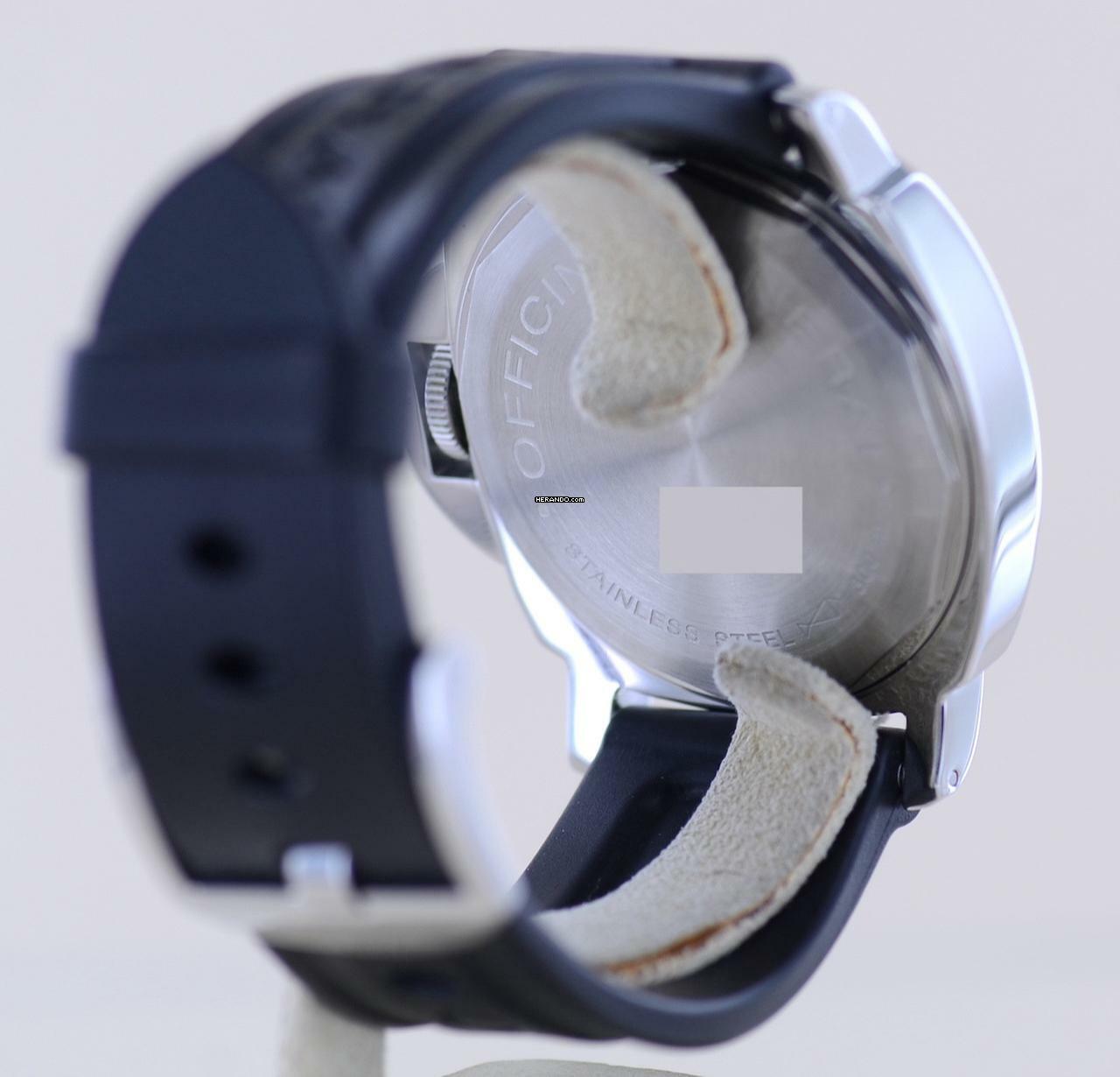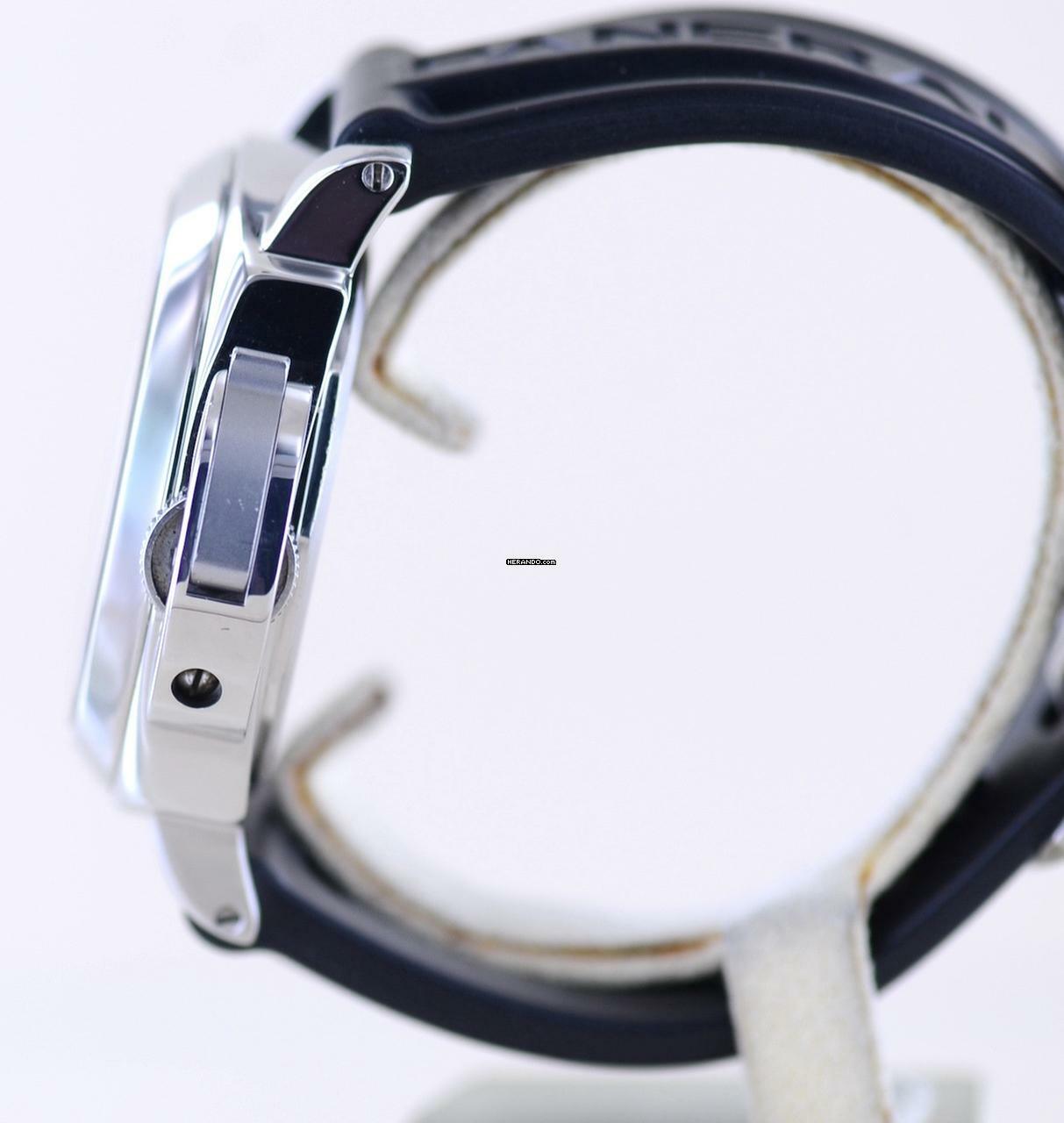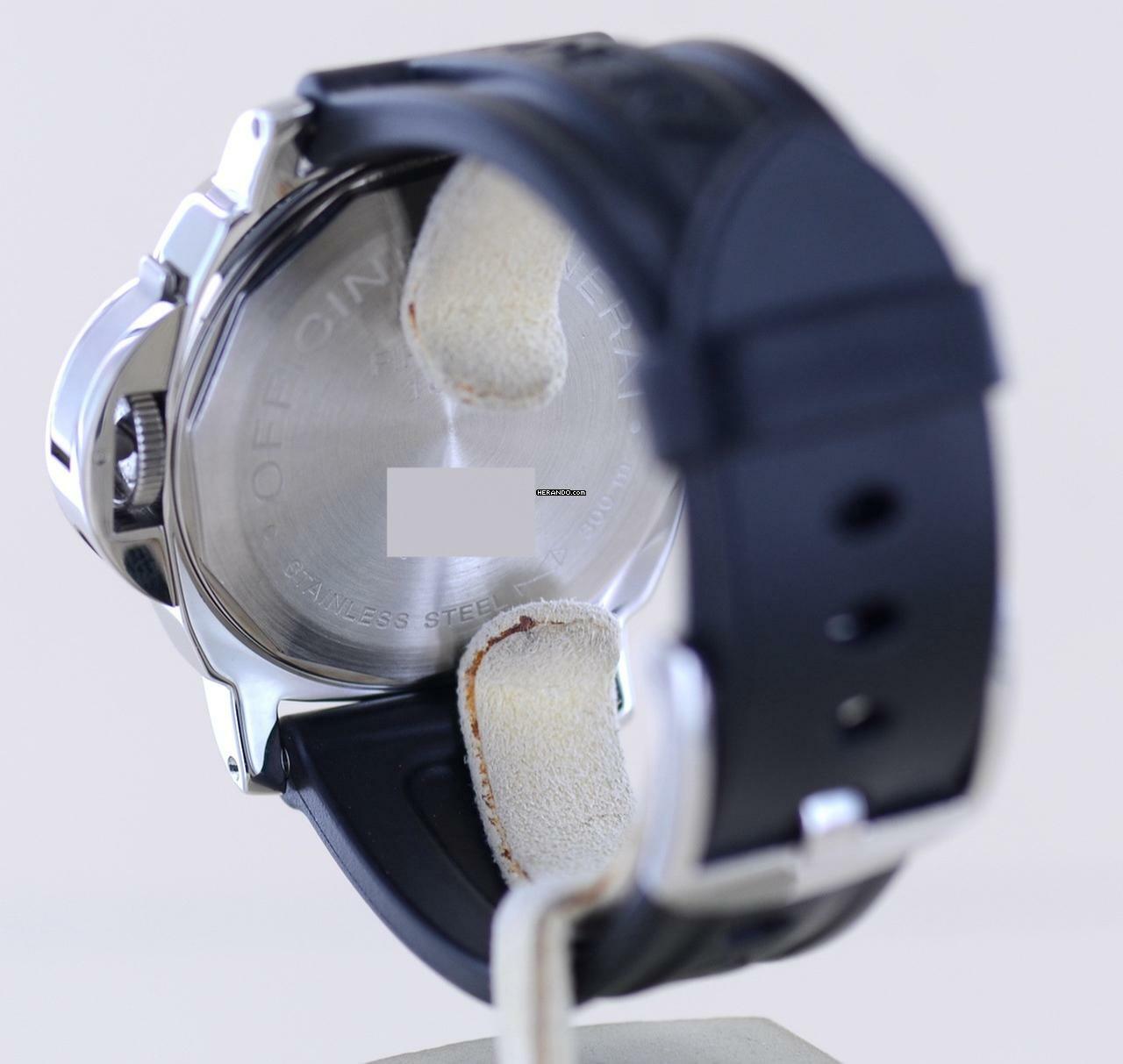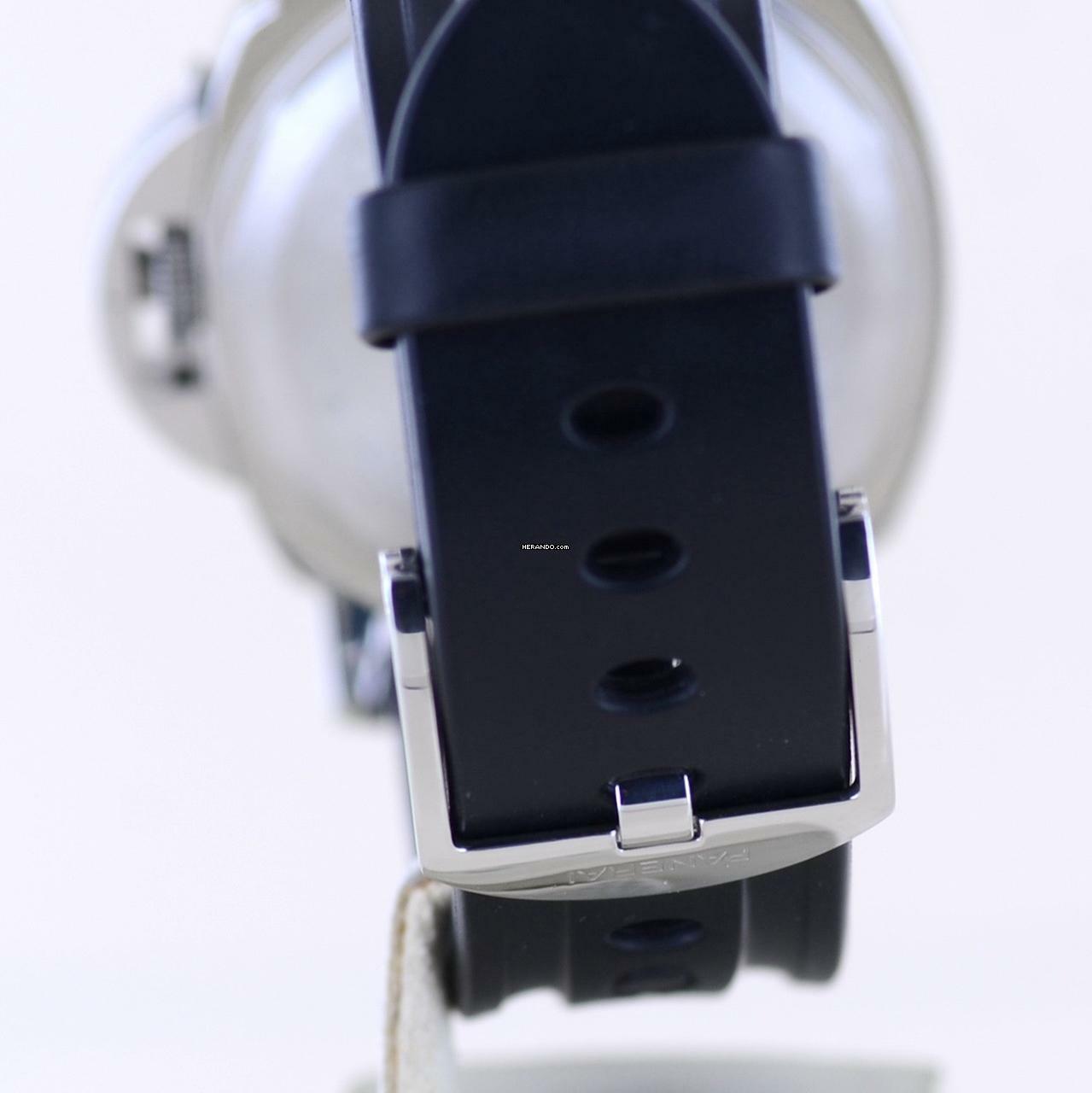 Die PAM ist im schönen Zustand und kommt am schwarzen Kautschukband mit Panerai Dornschließe. Kleine Gebrauchsspuren sind vorhanden wie leichte Macken am Gehäuse sowie an der Glaskante. Uns war es wichtig die Substanz dieser Toolwatch jedoch zu erhalten.