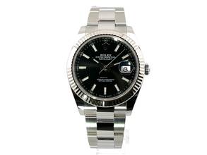 Gehäuse aus Edelstahl poliert und satiniert, Gehäusedurchmesser 41 mm, geriffelte 18 kt Weißgold Lünette, Oyster Armband aus Edelstahl poliert und satiniert mit Faltschließe, schwarzes Zifferblatt mit 18 kt Weißgold LeuchtIndexen, Leuchtzeiger, Automatikwerk, Rolex Manufakturkaliber 3235, Chronometer, 70 Stunden Gangreserve, Datumsanzeige, kratzfestes Saphirglas, verschraubte Krone, Edelstahlboden verschraubt, Wasserdicht bis zu 10 bar.