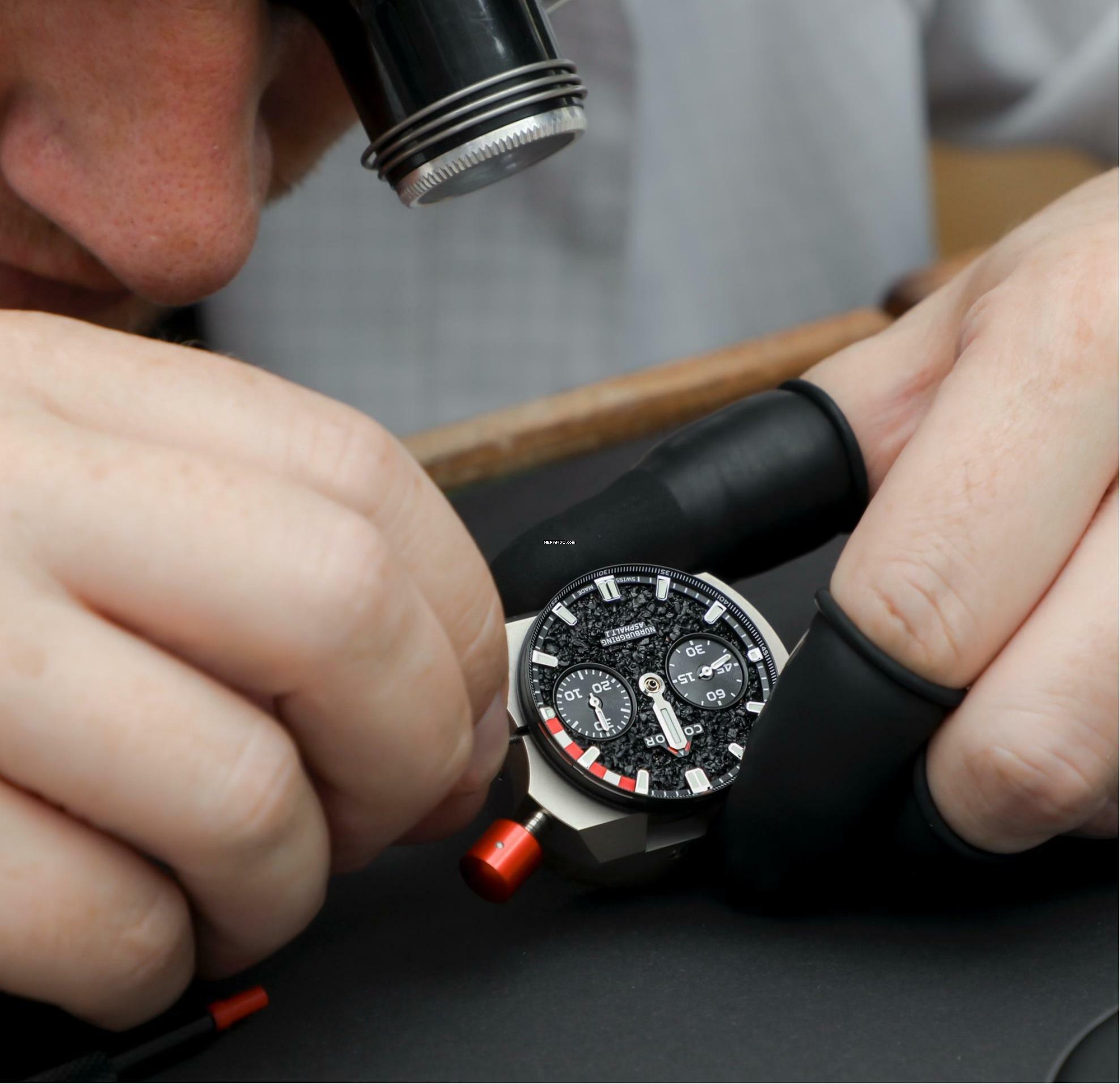 Um dem echten und historischen Rennstrecken-Asphalt in seiner Wertigkeit gerecht zu werden, haben wir keine Qualitätskompromisse bei der Herstellung unserer Uhr gemacht. Wir haben hochwertigste Materialien wie Titan (Grade 5), Saphir, Keramik und Naturkautschuk verwendet. Die Uhr wird ausschließlich in der historischen Schweizer Uhrmacher-Stadt, La Chaux-de-Fonds produziert.