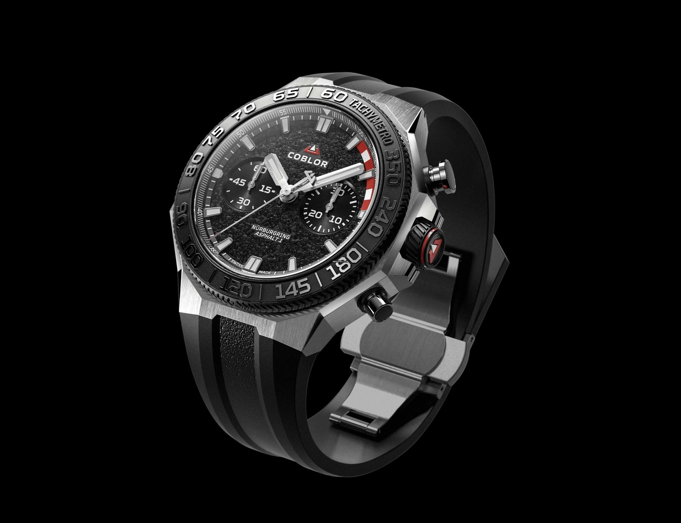 Pure Racing trifft auf Pure Emotion. Das ist COBLOR, eine Manufaktur aus Deutschland die es Motorsport Enthusiasten ermöglicht eine fast 100-jährige Historie der berühmtesten Rennstrecke der Welt, unserem Nürburgring, am Handgelenk zu tragen. Generationen der weltbesten Fahrer, unzählige Weltmeister sind über den Asphalt gerast welcher jetzt das Zifferblatt eines Chronographen ziert. Natürlich ist dadurch jede Uhr, der 500 limitierten Stücke, ein echtes Unikat. Aus einer Idee, gepaart mit Innovation und einer gehörigen Portion Mut etwas besonderes zu schaffen, mündete alles zusammen in einer echten Weltpremiere.