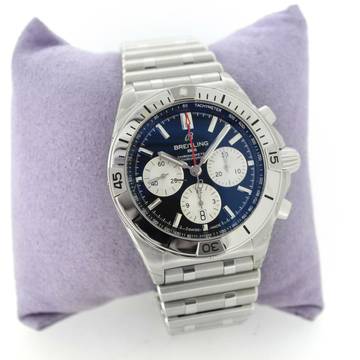 Diese Breitling Uhr verfügt über ein 42mm Stahlgehäuse. Die Uhr verfügt über ein schwarzes Zifferblatt. Die Uhr ist mit einem Stahlband ausgestattet.