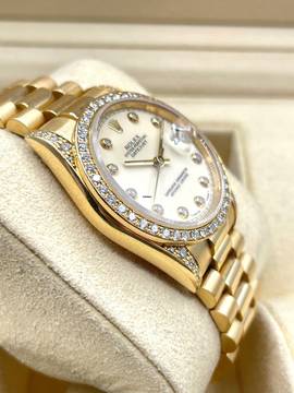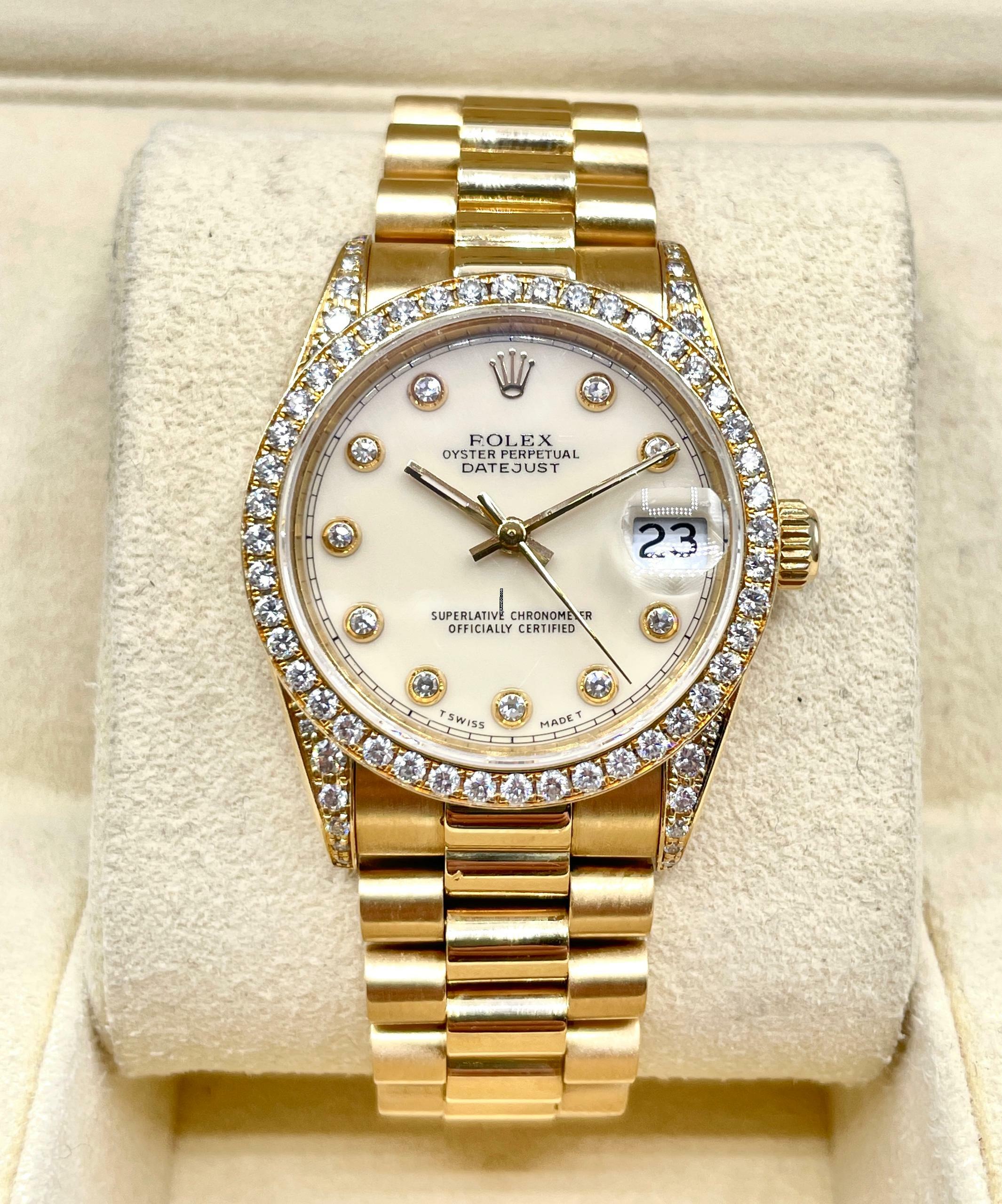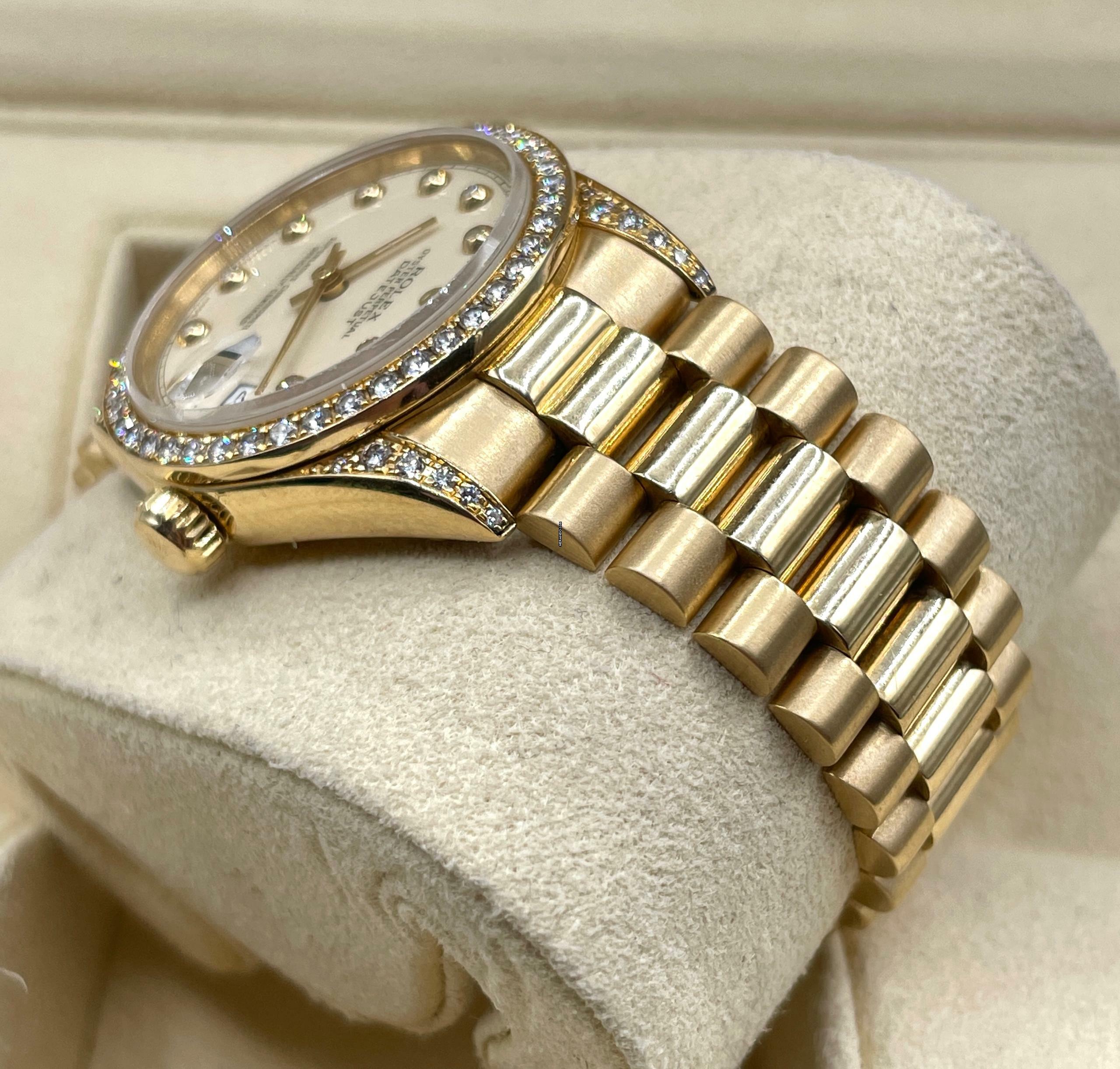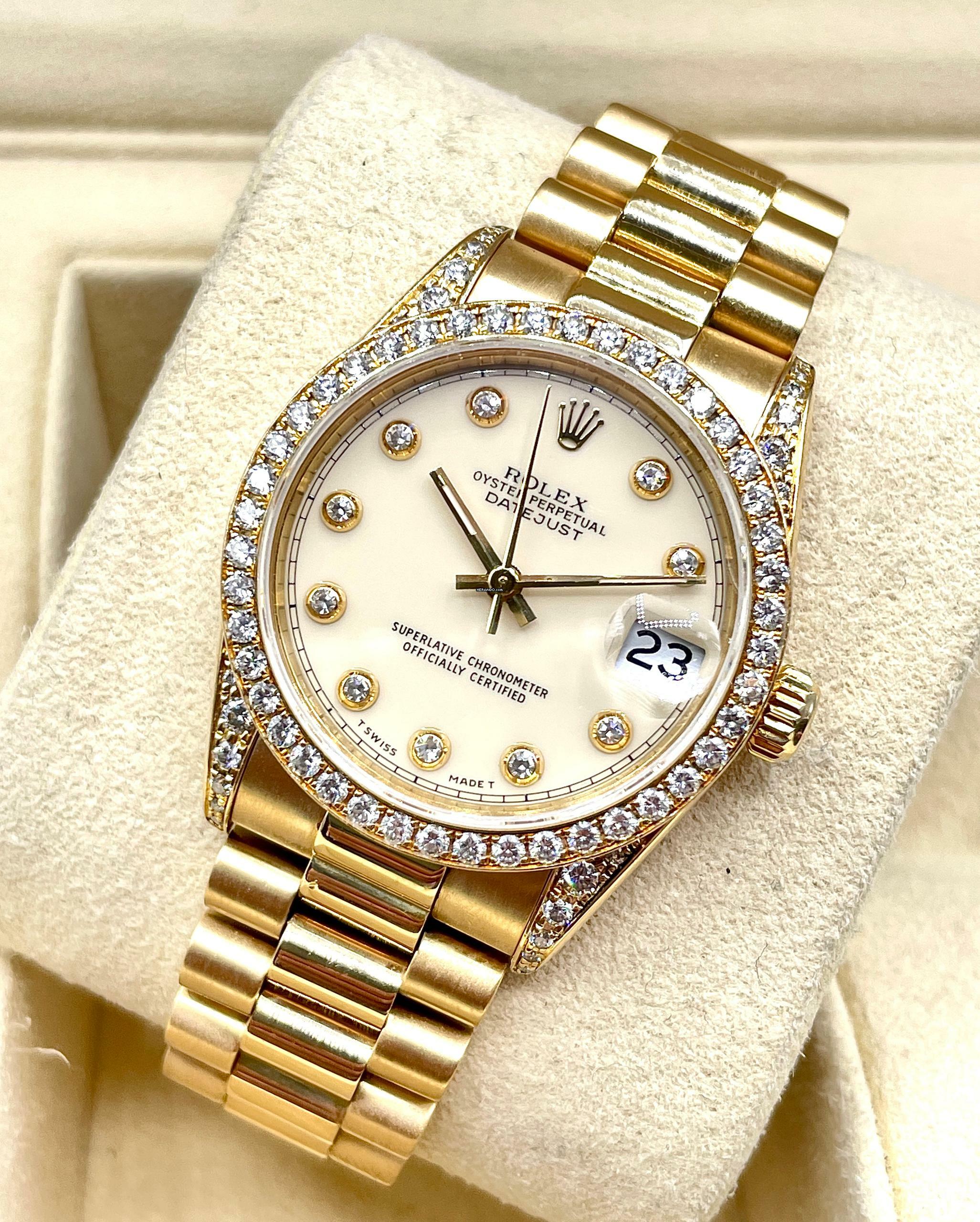 Rolex Lady-Datejust 31mm YELLOWG. 18Kt. RARE IVORY-NIPPLE-DIAMOND DIAL FACTORY DIAMOND SETTING