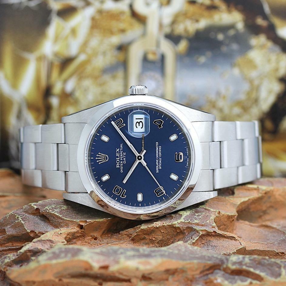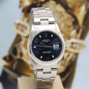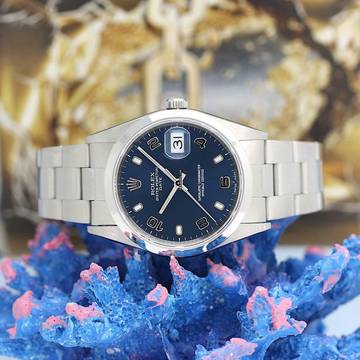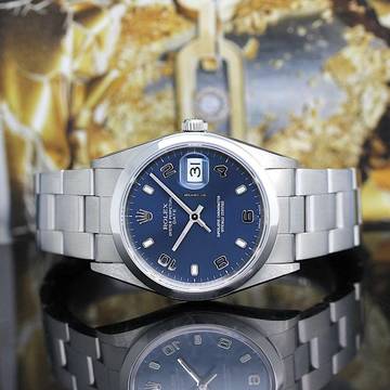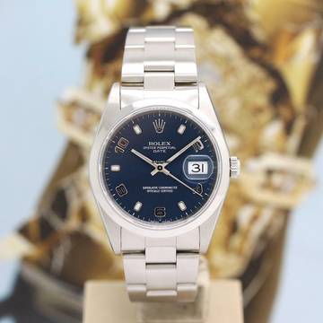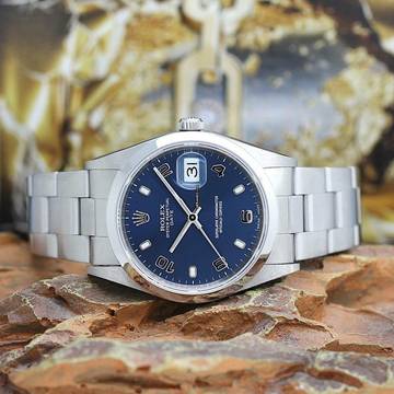 Die Uhr befindet sich in einem dem Alter entsprechend guten Zustand. Sie ist mit einem Automatikwerk ausgestattet. Eine Bereicherung für jeden Uhrensammler und Liebhaber. Alle Funktionen wurden vom Uhrmachermeister überprüft und für einwandfrei befunden. Das Werk wurde im Auguat 2024 revisioniert. Das Oysterband ist in Stahl und gebraucht, aber in einem noch sehr guten Zustand. Sie bieten hier auf eine Wunderschöne und klassische Armbanduhr der Spitzenklasse mit Wiedererkennungswert. Saphirglas . Das Zifferblatt ist blau - farbig. Die Lünette ist aus Edelstahl. Die Date Uhr ist ca 20 Jahre alt, und wird in einem gebrauchten Zustand verkauft. Rolex Box & Papiere ( LC 888 ) sind vorhanden.