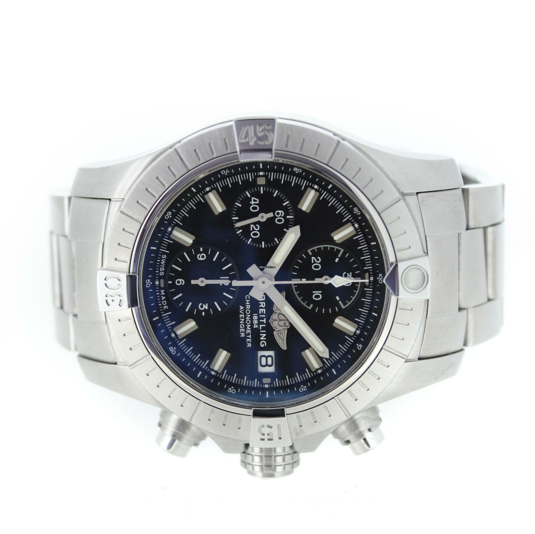Diese Breitling Uhr verfügt über ein 43 mm Stahlgehäuse. Die Uhr verfügt über ein schwarzes Zifferblatt. Die Uhr ist mit einem Stahlband ausgestattet.