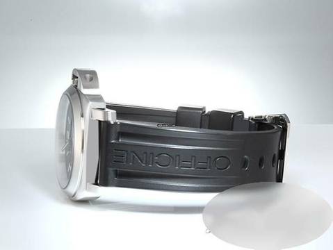 Sportliches schwarzes Panerai-Kautschuk-Armband mit einer Panerai-Schließe ebenfalls aus Edelstahl