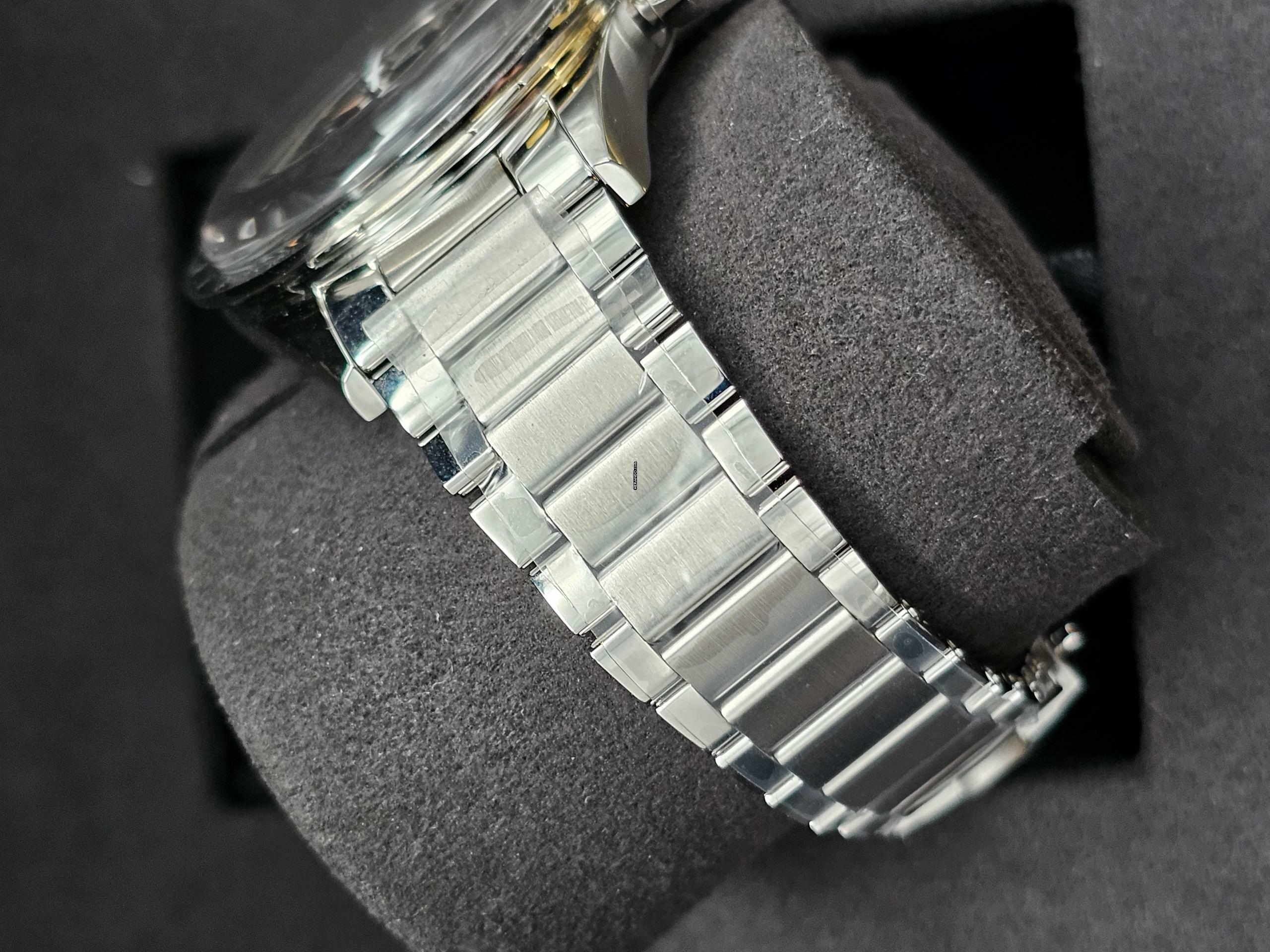 The watch will be delivered with the original box, papers and almost 5 years international factory warranty. The watch is in New Condition. Warranty card date:8-2025.