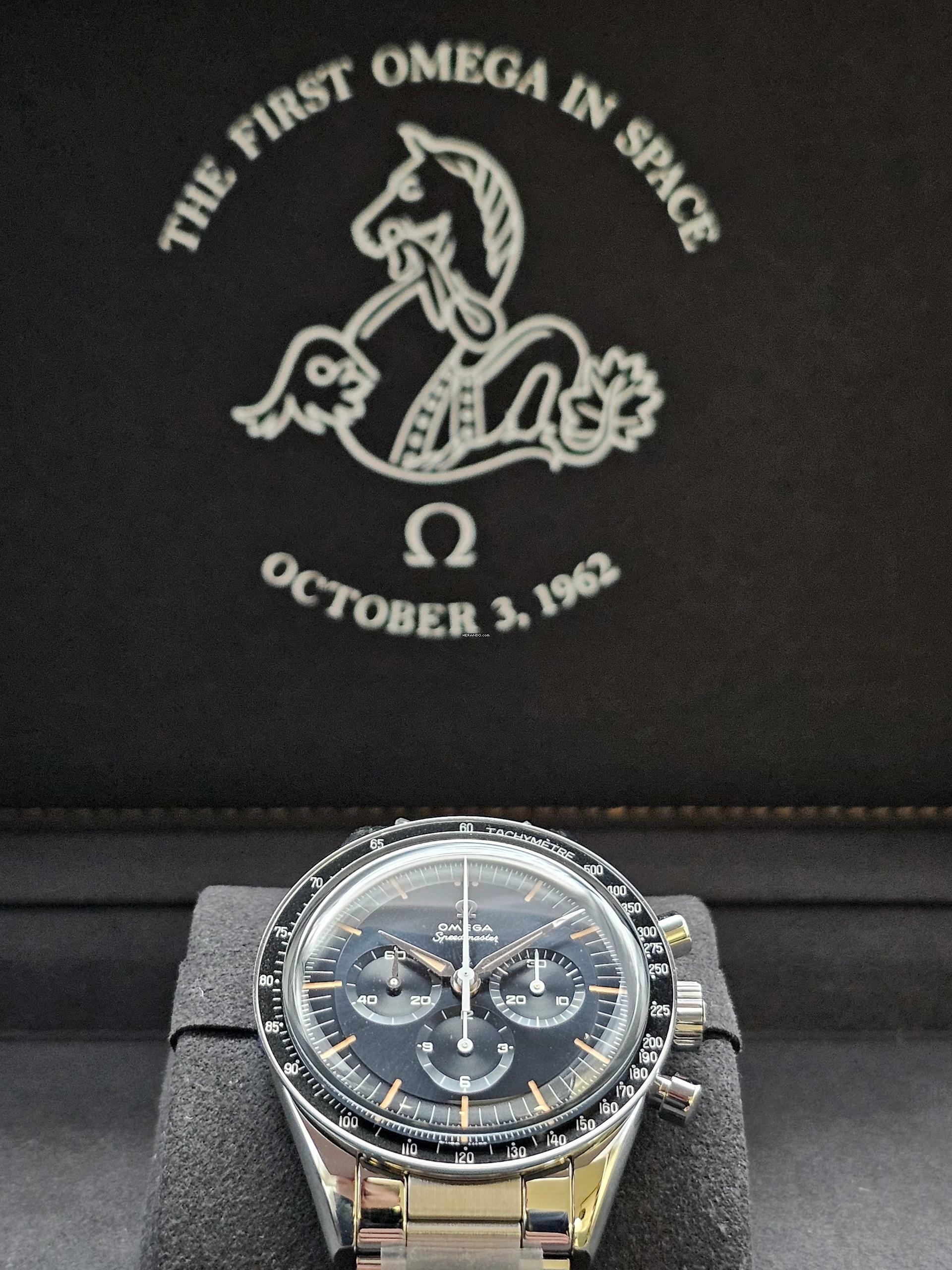''On October 3rd, 1962, the Speedmaster CK 2998 became the first OMEGA worn in space, when the astronaut Walter Schirra wore his personal model on the Sigma 7 mission of the Mercury programme. This updated version is a tribute to that pioneering timepiece and captures the same 2nd generation Speedmaster style in modern form.