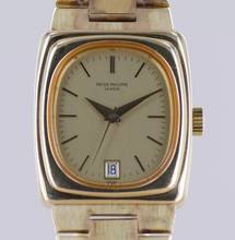 Sehr schöne und äußerst seltene Patek Philippe Beta in der Gelbgoldvariante mit Saphirglas und goldenem Blatt. Diese Patek markiert gleich mehrere Meilensteine der Patek-Geschichte und ist eine geniale Uhr. Die Uhr wurde in den 70er ausgeliefert und konkurrierte mit der Rolex Texano sowie der Omega Constellation Beta. Die Produktionszahlen waren äußerst gering. Rolex produzierte 750 goldene Texano und Patek weniger als 100 Stück. Es bekamen nur auserwählte Kunden die Option sich ein Modell zu sichern und heute ist das Modell kaum noch zu finden.Ein weiterer Meilenstein war das Saphirglas, welches bei dieser Uhr verbaut war. Bis zu diesem Zeitpunkt gab es hauptsächlich Plexigläser und nur wenige Uhren verfügten über dieses besondere harte Glas, welches sich durch Kratzfestigkeit und beste Ablesbarkeit bewährt hat.