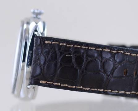 Schöne, große Panerai California OP 6800 / PAM 00448 mit satten 47 mm Durchmesser. Die Uhr versprüht einen genialen Vintage-Flair und erinnert an die ersten Panerai-Modelle aus den 60ern. Besonders zu erwähnen ist das California-Zifferblatt, welches mit der gelblichen Leuchtmasse für einen coolen Vintage-Look sorgt. Oberer Bereich römisch, unterer Bereich arabische Ziffern. Durch den Verzicht auf die Sekunde wirkt das Blatt sehr ausgewogen und ruhig.