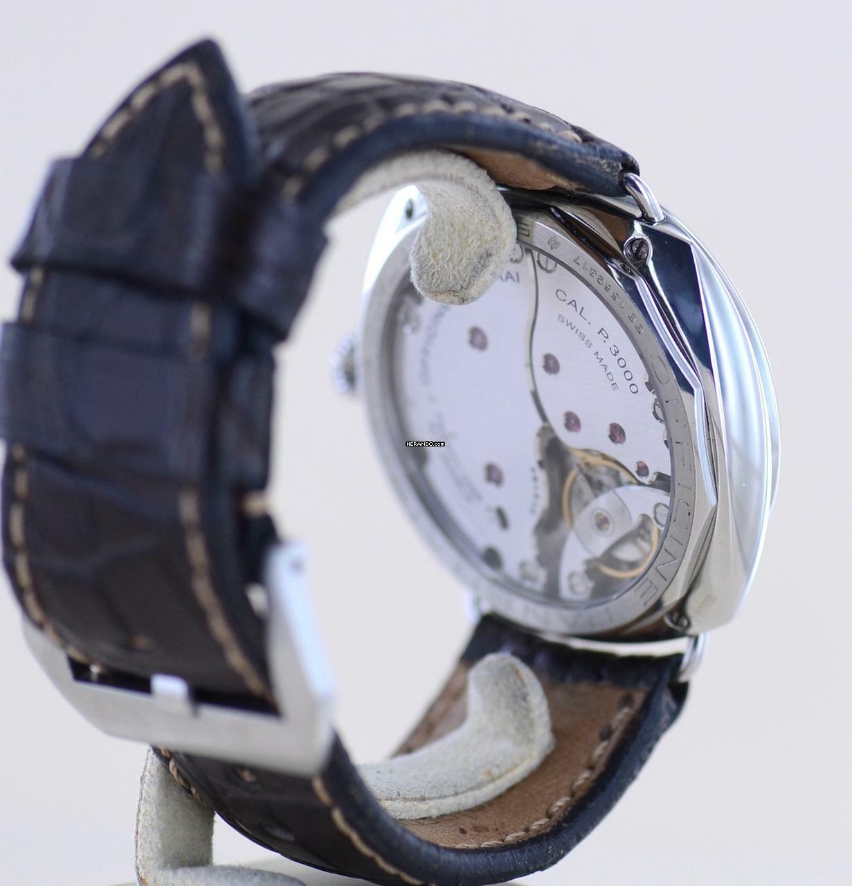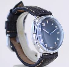 Ein sehr klares, reduziertes und super ablesbares Zifferblatt. Die Leuchtkraft der Zeiger und Indizes ist - paneraiüblich - beeindruckend. Bei diesem Sondermodell wurde gänzlich auf die Beschriftung (Logo / Marke etc) verzichtet. Die Uhr trägt sich hervorragend in jeder Situation. Egal ob Business, Sport oder Freizeit. Die Panerai ist stets ein treuer und zuverlässiger Begleiter am Arm, die für modernen Luxus steht. Das massive Gehäuse liegt satt am Arm und zieht die Blicke auf sich.