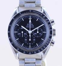 Diese Speedmaster ist ein Stück Uhrengeschichte und ein Klassiker der Fliegerei. Die hier angebotene Version ist ein schönes Exepmplar aus 1970, welches über den NASA-Schriftzug auf dem Boden sowie das Pferdchen in der Mitte verfügt. Die Seriennummer der Uhr beginng mit 321.....Bei Uhrenliebhabern genießt diese Omega Kultstatus. Die "Moonwatch" war die erste Uhr auf dem Mond und rettete auf der "Apollo 13 Mission" den Astronauten das Leben, weil sie sehr präzise die 14 Sekunden bis zur Zündung der Raketen zum Wiedereintritt in die Erdatmosphäre anzeigte. Kurzum, dieses Uhrenmodell gehört in jede Uhrensammlung.