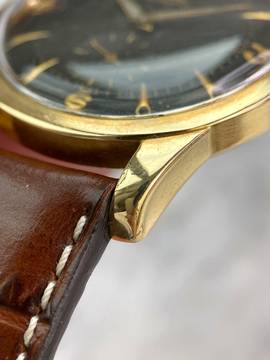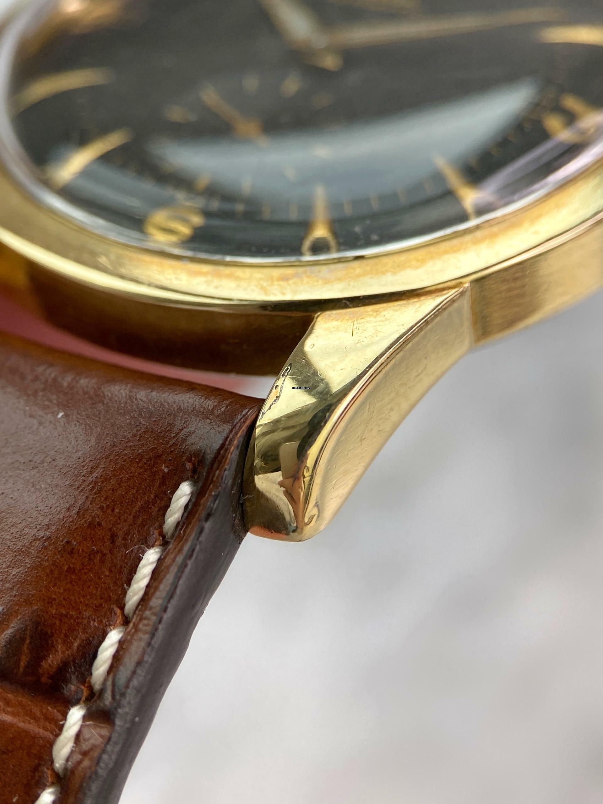 crew-down case, bezel in Calatrava design, unrestored black dial.