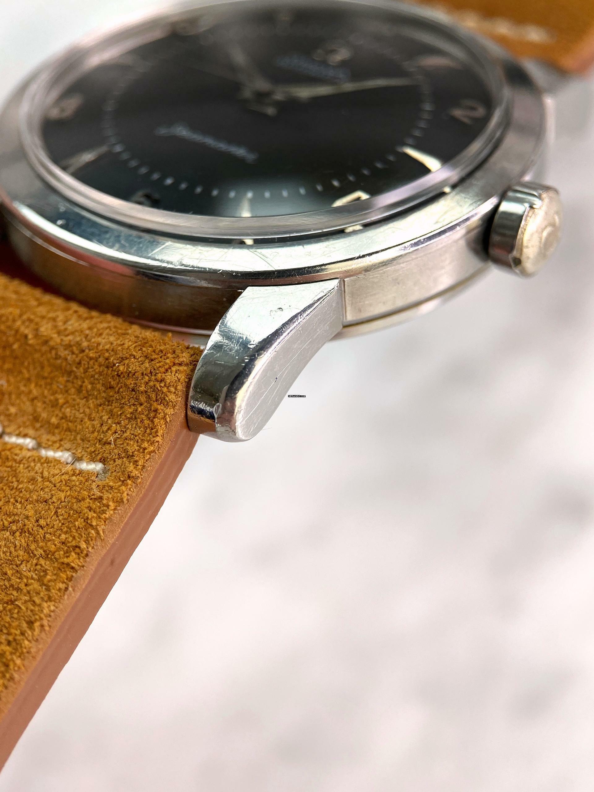 - We believe that the dial has been refurbished/restored years ago. This means that a fresh coat of paint has been applied by a watch dial restorer; the metal base of the dial stayed untouched.