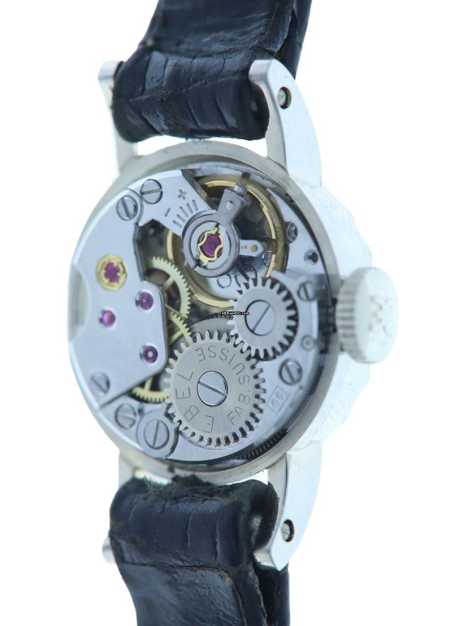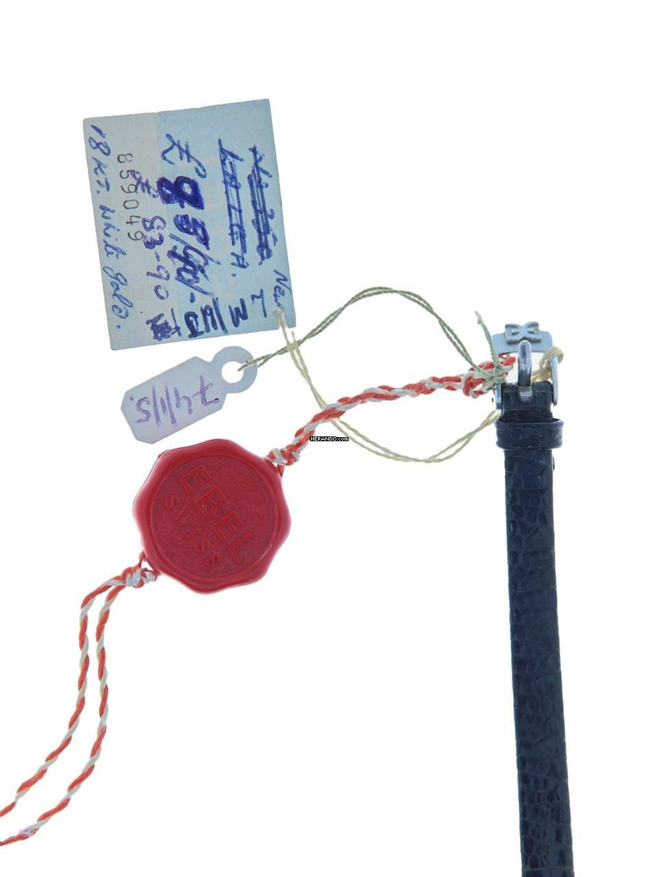 Band / Schließe: original schwarzes Lederband mit original Edelstahl Dornschließe signiert ebel