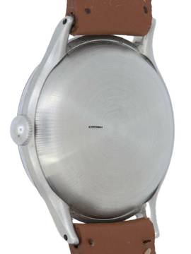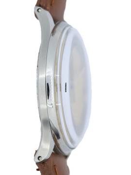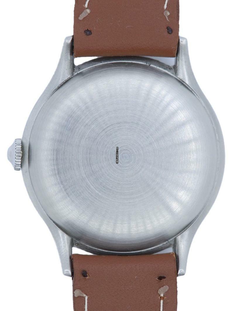 Band / Schließe: neues braunes unsigniertes hochwertiges Lederband mit unsignierter Stahl-Dornschließe, nachträglich an der Uhr angebracht