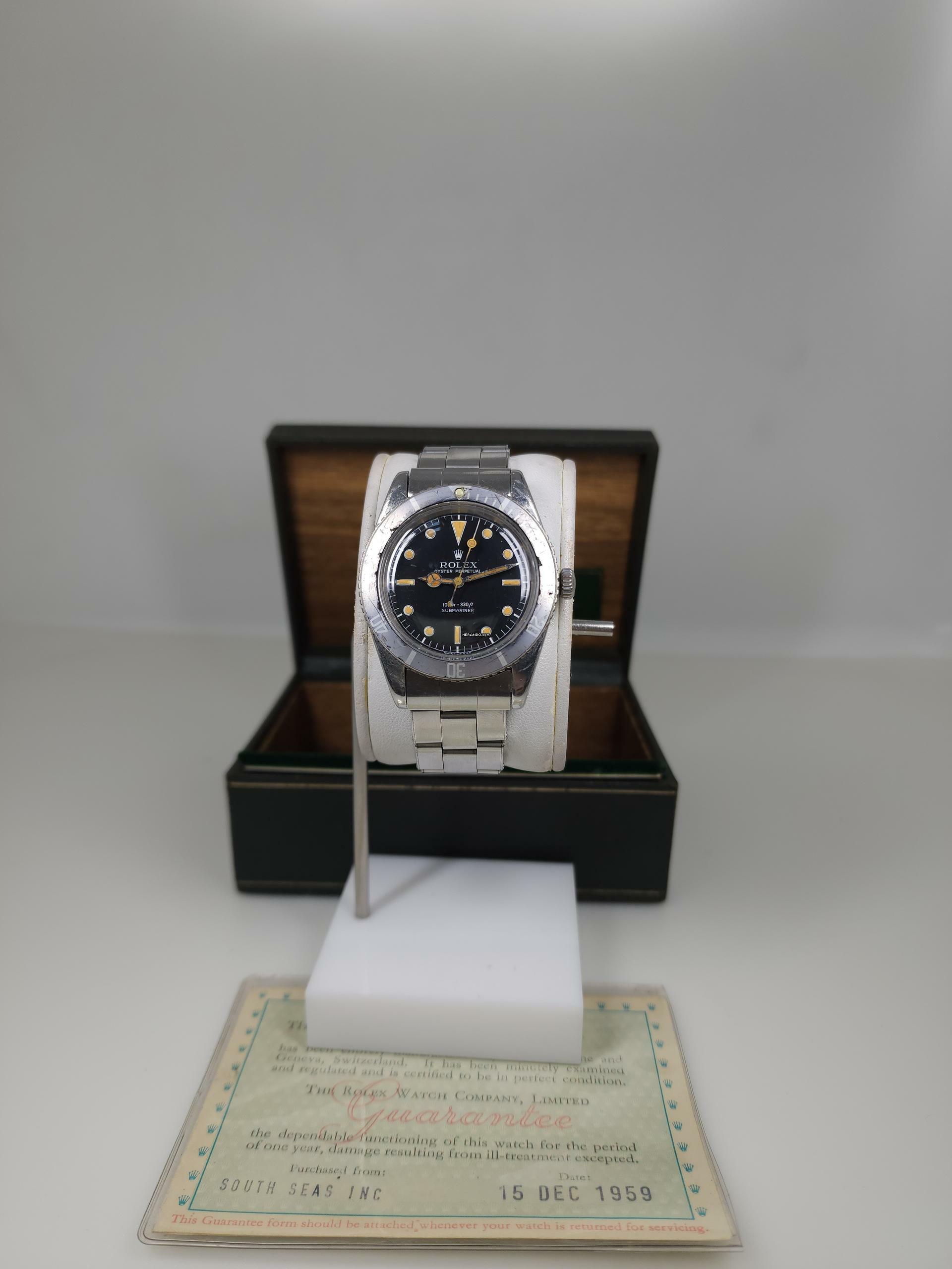 Box & Papier: kommt komplett mit original Rolex Vintage-Box und die Garantiepapiere Datum 1959 mit passenden Seriennummern.