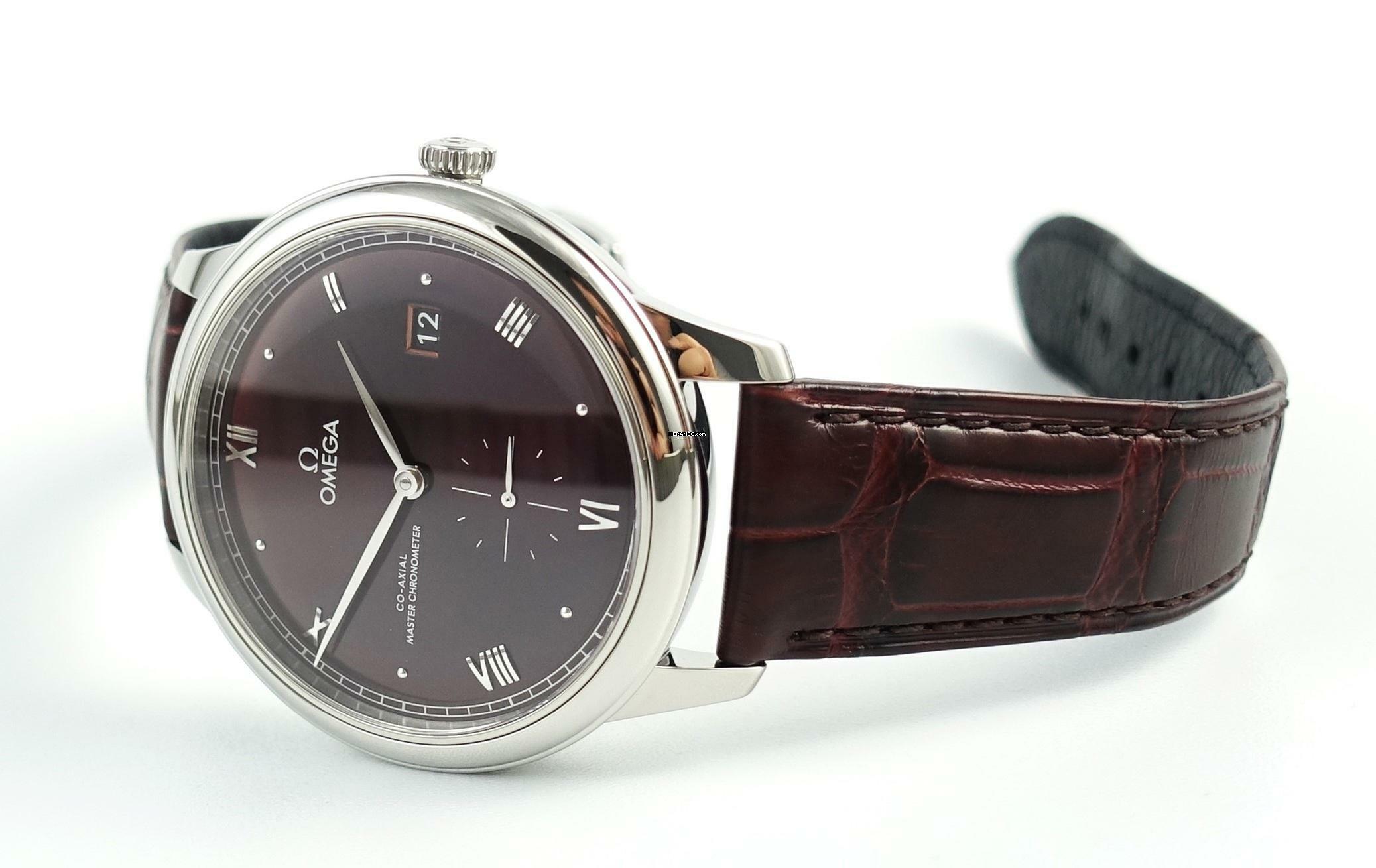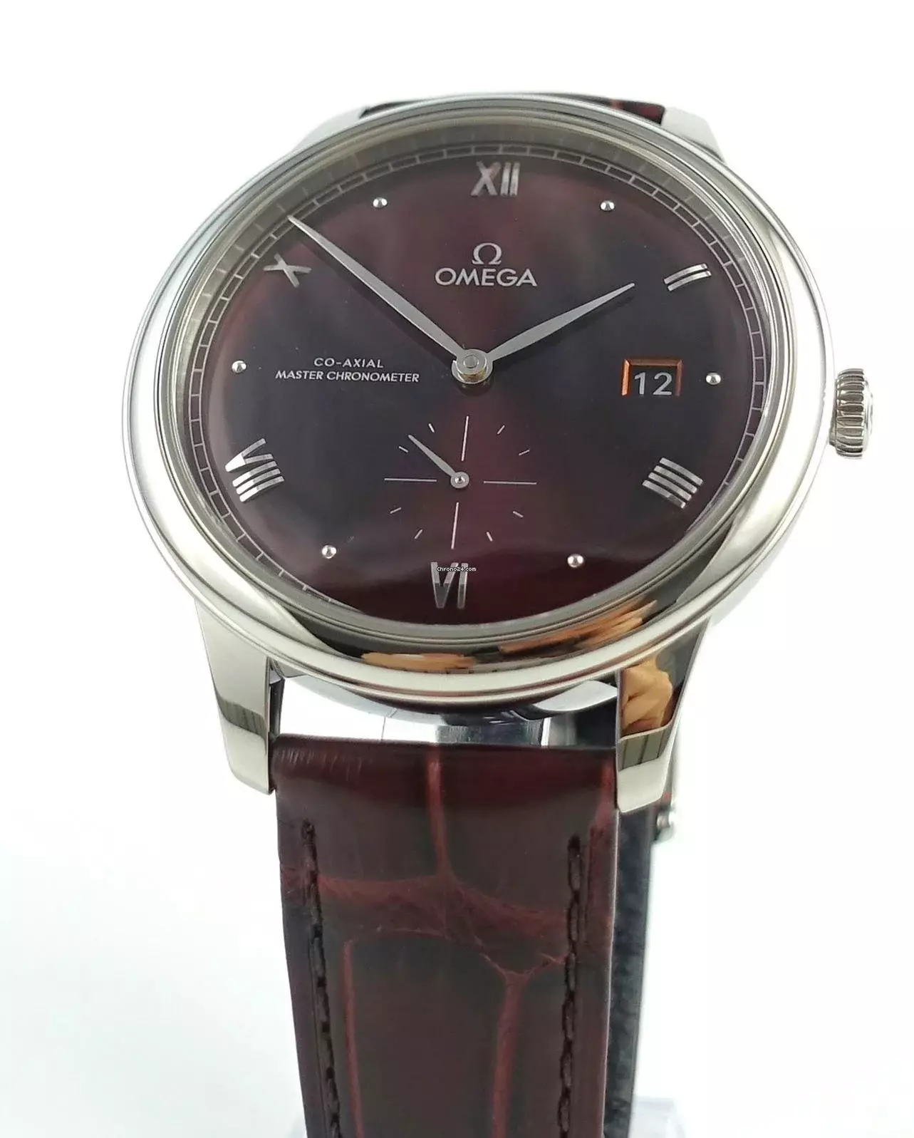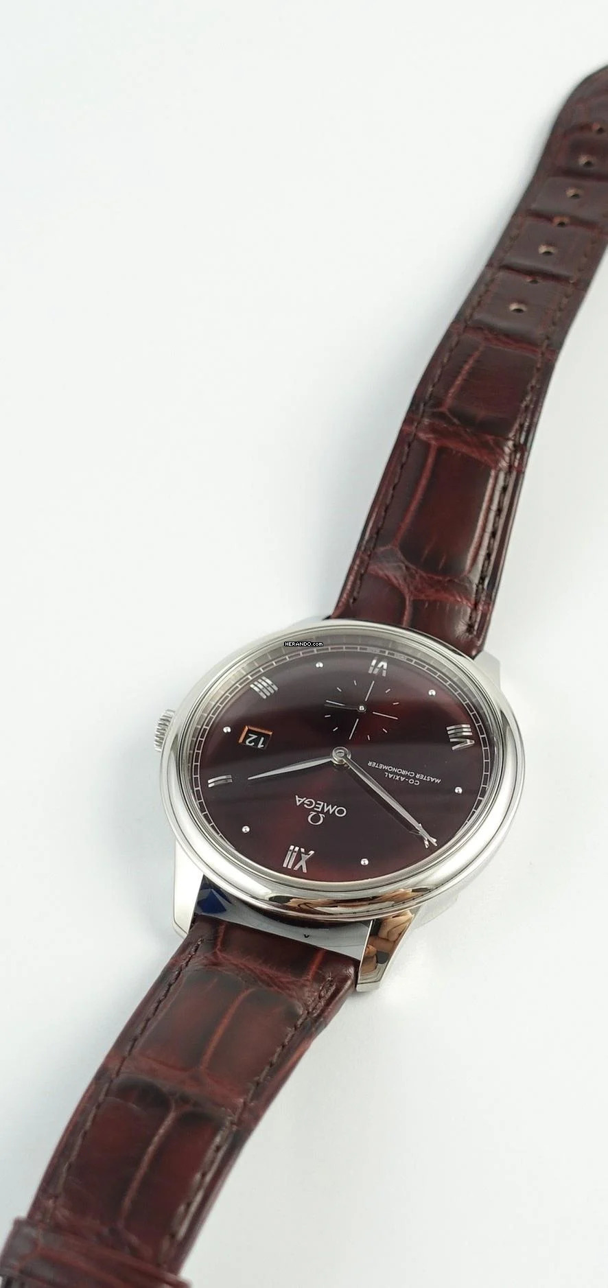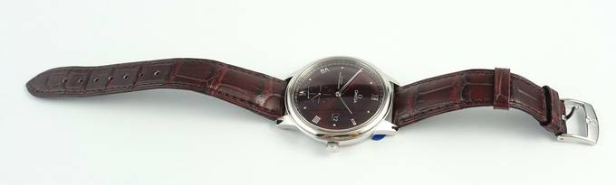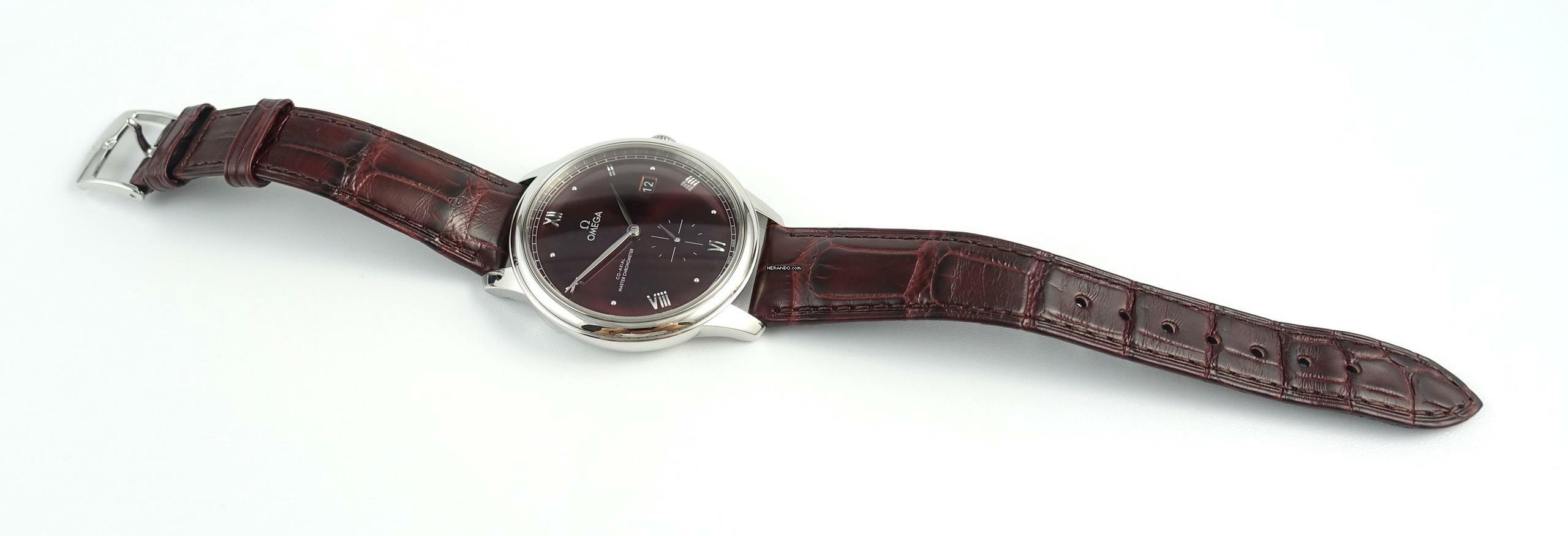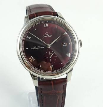 Weinrotes Ziffernblatt mit silber farbenen Indexen und Zeiger