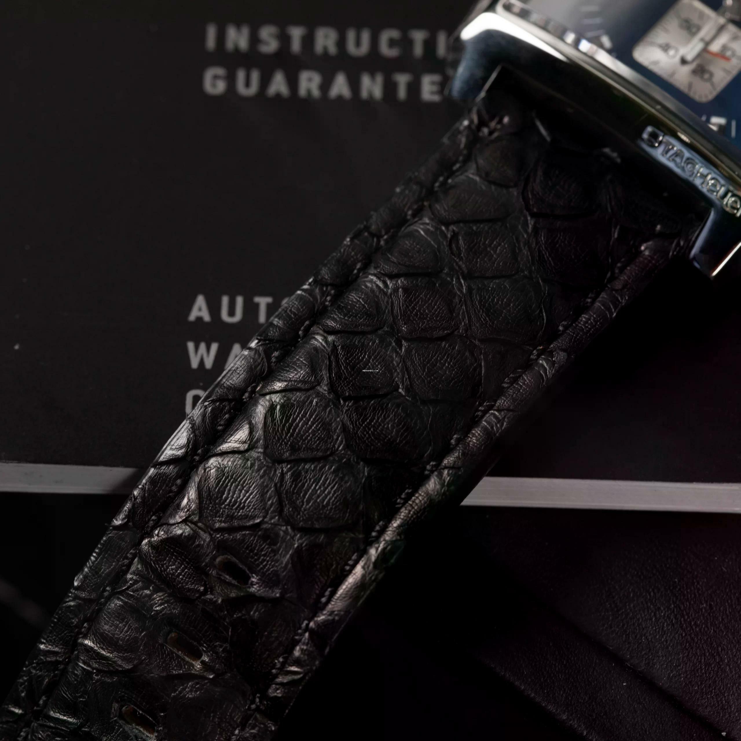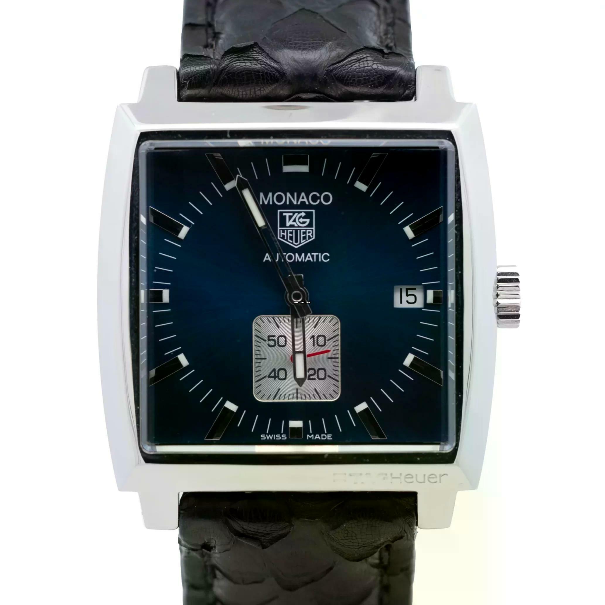 Die Monaco WW2111 wird von einem Automatikwerk Kaliber 6 angetrieben und bietet eine präzise Zeitmessung mit einer Datumsfunktion bei 3 Uhr und einer kleinen Sekundenanzeige bei 6 Uhr. Die silberfarbenen Leuchtzeiger und -markierungen gewährleisten die Ablesbarkeit bei unterschiedlichen Lichtverhältnissen. Das integrierte schwarze Lederarmband mit Dornschließe bietet Komfort und Stil zugleich und sichert die Uhr am Handgelenk.