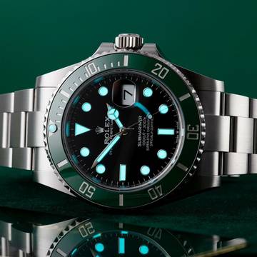 Ikonische grüne Keramiklünette mit korrosionsbeständigem Gehäuse aus 904L Oystersteel.