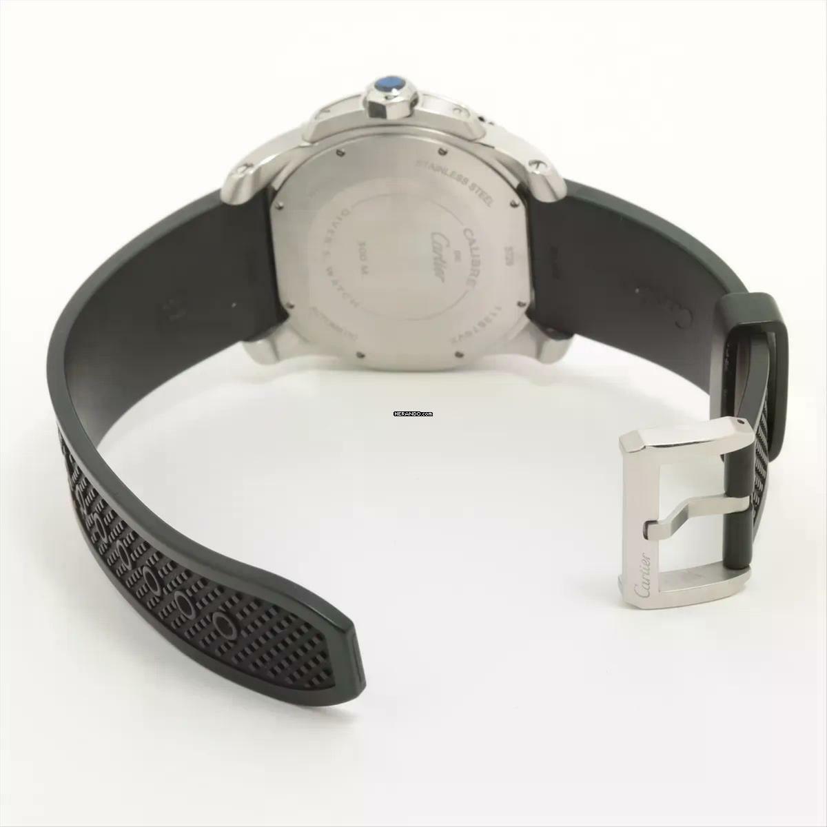 Die Calibre de Cartier Diver W7100056 erfüllt die strengen Anforderungen der Norm ISO 6425 für Taucher und ist mit einer Wasserdichtigkeit von bis zu 300 Metern, einer verschraubten Krone und einem robusten Gehäuseboden ausgestattet, so dass sie sich für ernsthafte Unterwasserabenteuer eignet und gleichzeitig eine luxuriöse Ästhetik bewahrt.