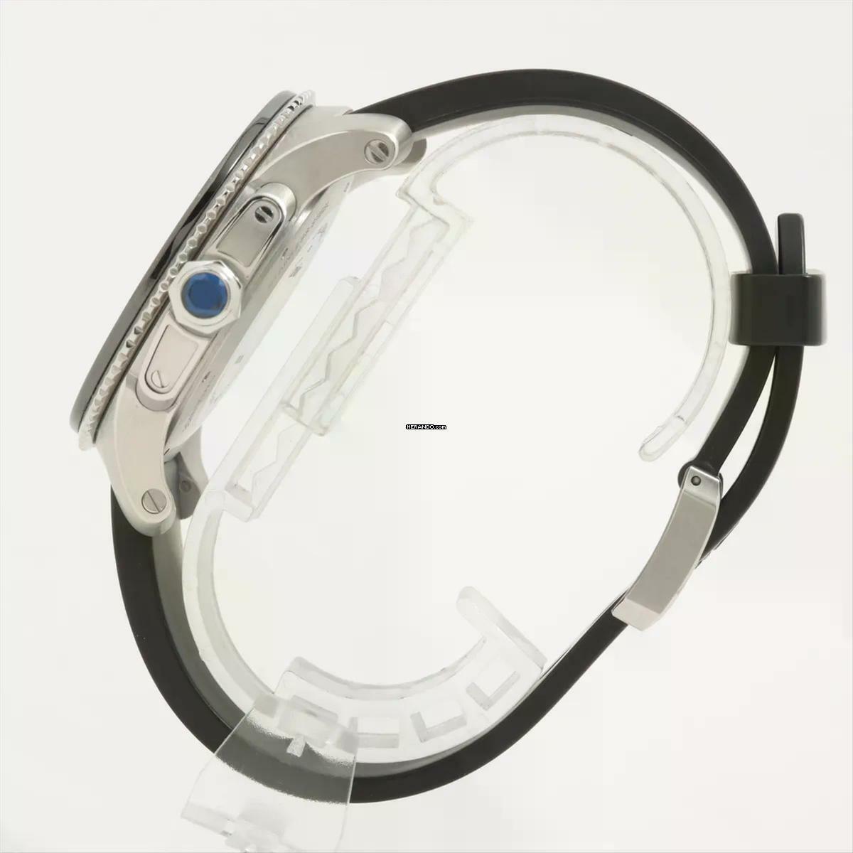 Das markante schwarze Zifferblatt ist mit leuchtenden Indexen und schwertförmigen Zeigern ausgestattet, die für eine hervorragende Ablesbarkeit unter Wasser sorgen, und wird durch ein diskretes Datumsfenster bei 3 Uhr ergänzt. Das hauseigene Automatikwerk Kaliber 1904 mc von Cartier sorgt für zuverlässige Präzision und eine Gangreserve von 48 Stunden.