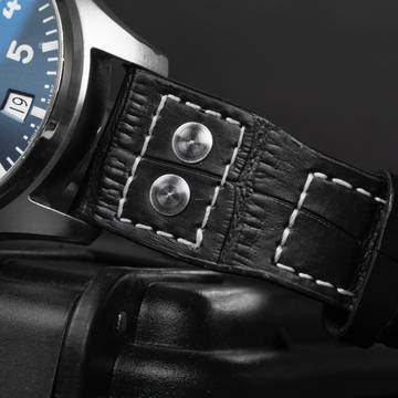Mit kratzfestem Saphirglas und einem transparenten Gehäuseboden vereint diese Swiss Made-Uhr Stil und Funktionalität für jeden Piloten und Abenteurer.