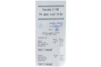 - Wasserdichtigkeit*: ja. Das Prüfprotokoll mit Prüfdruckangabe liegt bei.