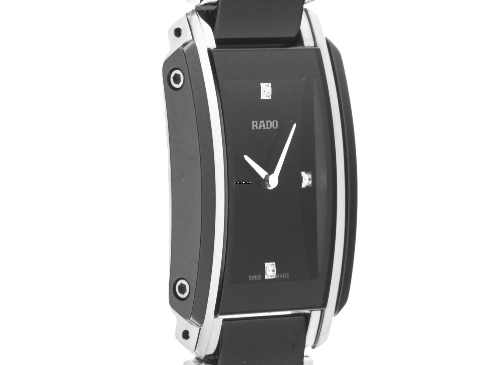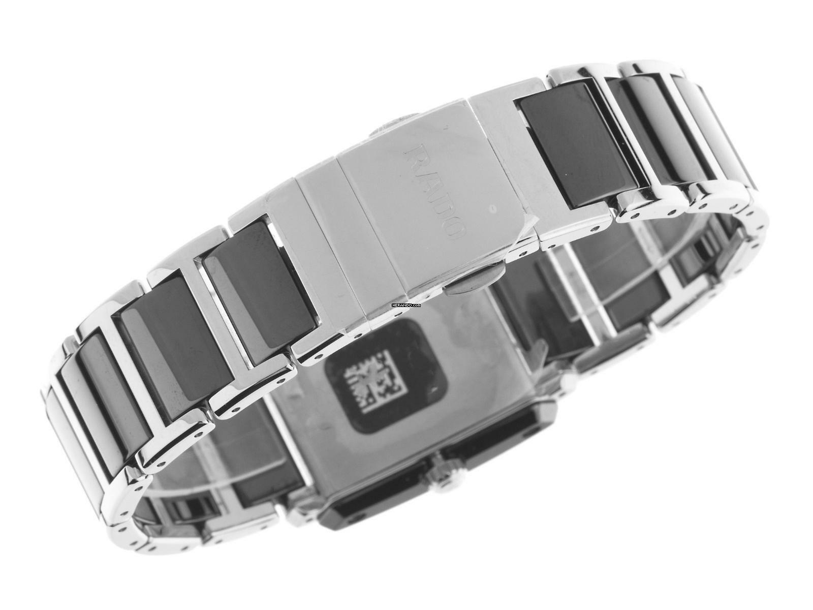 Rado Integral Diamonds Keramik Quarz Armband Keramik Stahl Gehäuse High Tech Keramik schwarz / Edelstahl beschichtet, kratzfest, rechteckig, Gehäusemaße ohne Krone (L x B x H) 33,1 x 22,7 x 6,5mm. Armband High Tech Keramik schwarz / Edelstahl, kratzfest, verdeckte Doppelsicherheitsfaltschließe Titan mit Hersteller-Logo. Zifferblatt schwarz mit 4 aufgesetzten Diamantindexen und Gelbgoldenen Zeigern. Uhrwerk quarzgesteuert Kaliber ETA. Anzeige von Stunde und Minute über Zeiger aus der Mitte. Saphirglas kratzfest. Krone Keramik. Boden Edelstahl verschraubt und graviert. Gewicht der Uhr inklusive Armband 72g, Länge des Armbandes inklusive Gehäuse 175mm. Referenznummer: R20613712, ID: KSTB149929940525RE-2500, Artikelnummer: 10000080435. Original Rado Box mit Umkarton und Garantie Papiere sowie Beschreibung, Full Set. Ungetragen. Lieferzeit sofort. Inklusive Zertifikat / Uhrenpass mit einem Farbbild, der genauen Beschreibung sowie dem Wiederbeschaffungswert der Uhr über 2500,-€ und 1000 Tage Garantie ab Kaufdatum.