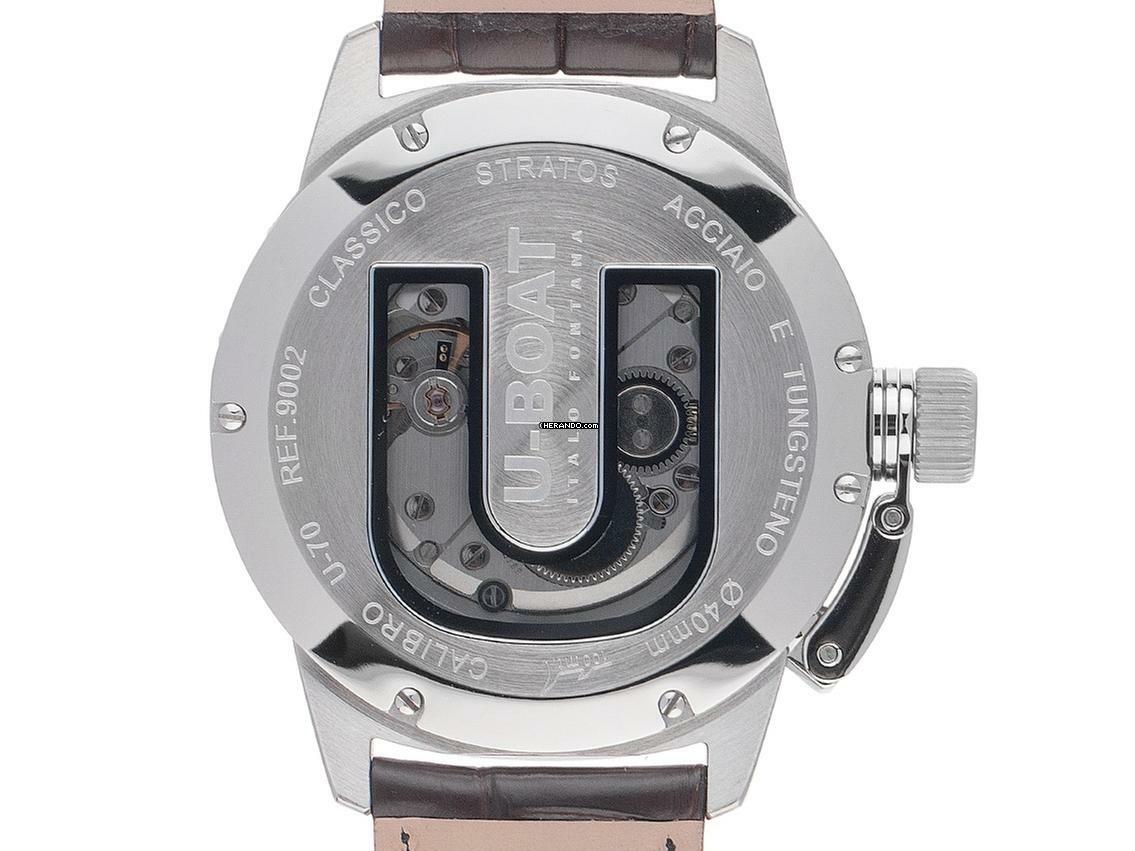 U-Boat Classico Italo Fontana Classico Stratos 40BK Stahl Handaufzug Armband Leder 40mm Ref.9002 Box&Pap. Full Set Neu