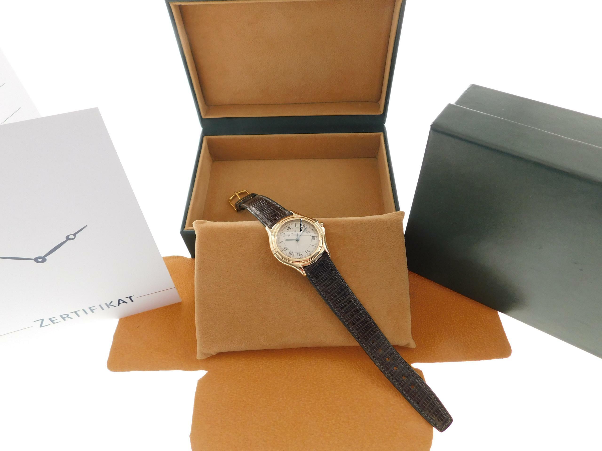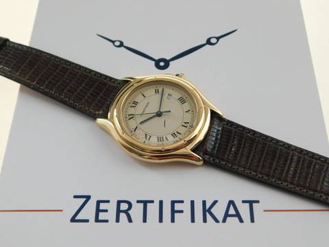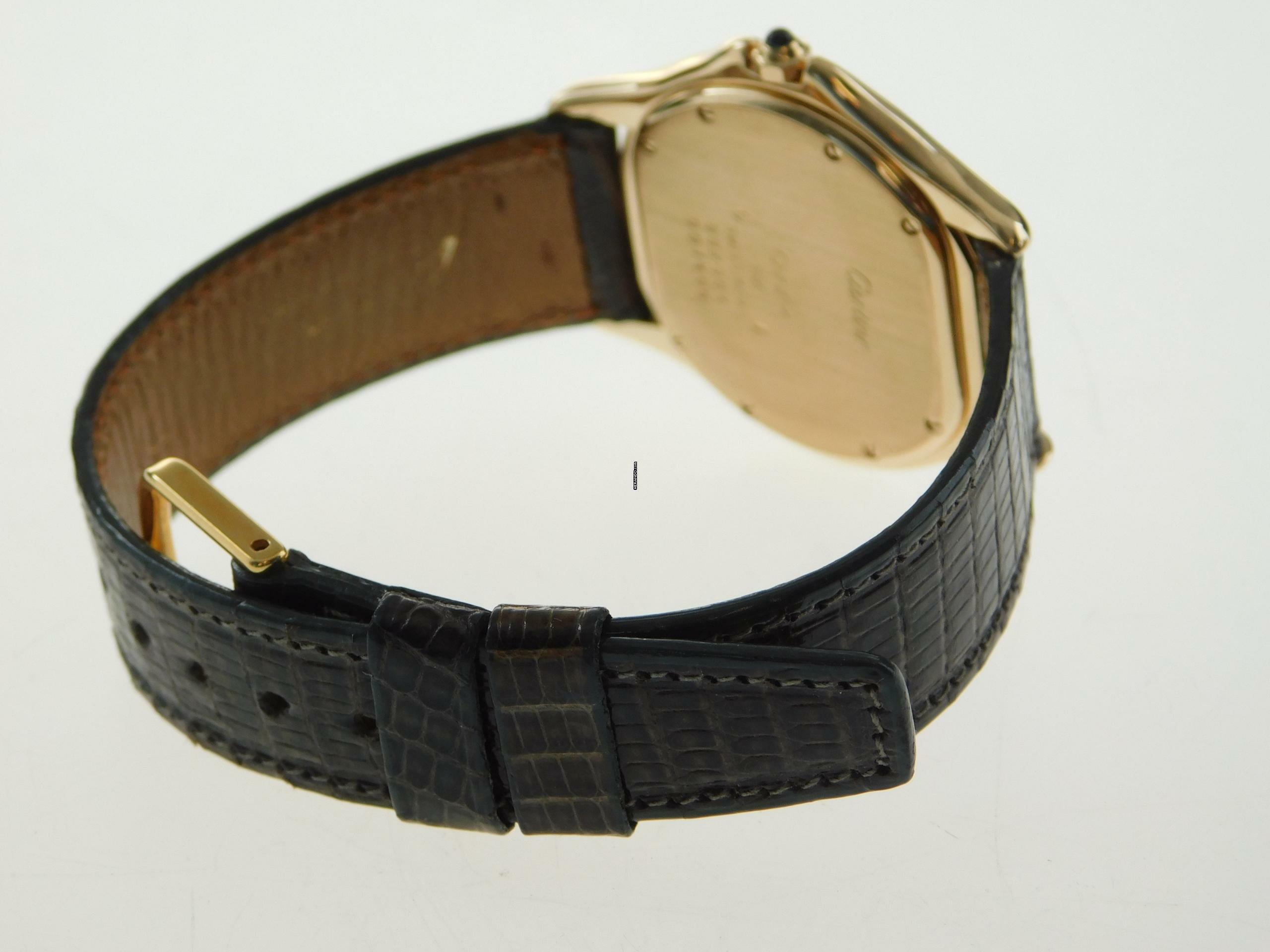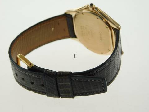 Cartier Cougar in massiv 18 Karat Gelbgold im Traum Zustand mit dem neuem neutralen Echt Eidechsband.
