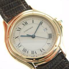 Cartier Cougar Panthere Cougar 18 Karat Gelbgold XL mit Datum im Traum Zustand am Eidechsband