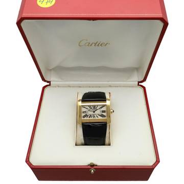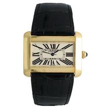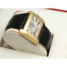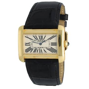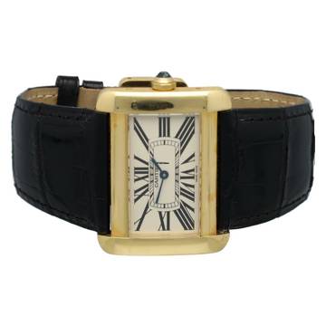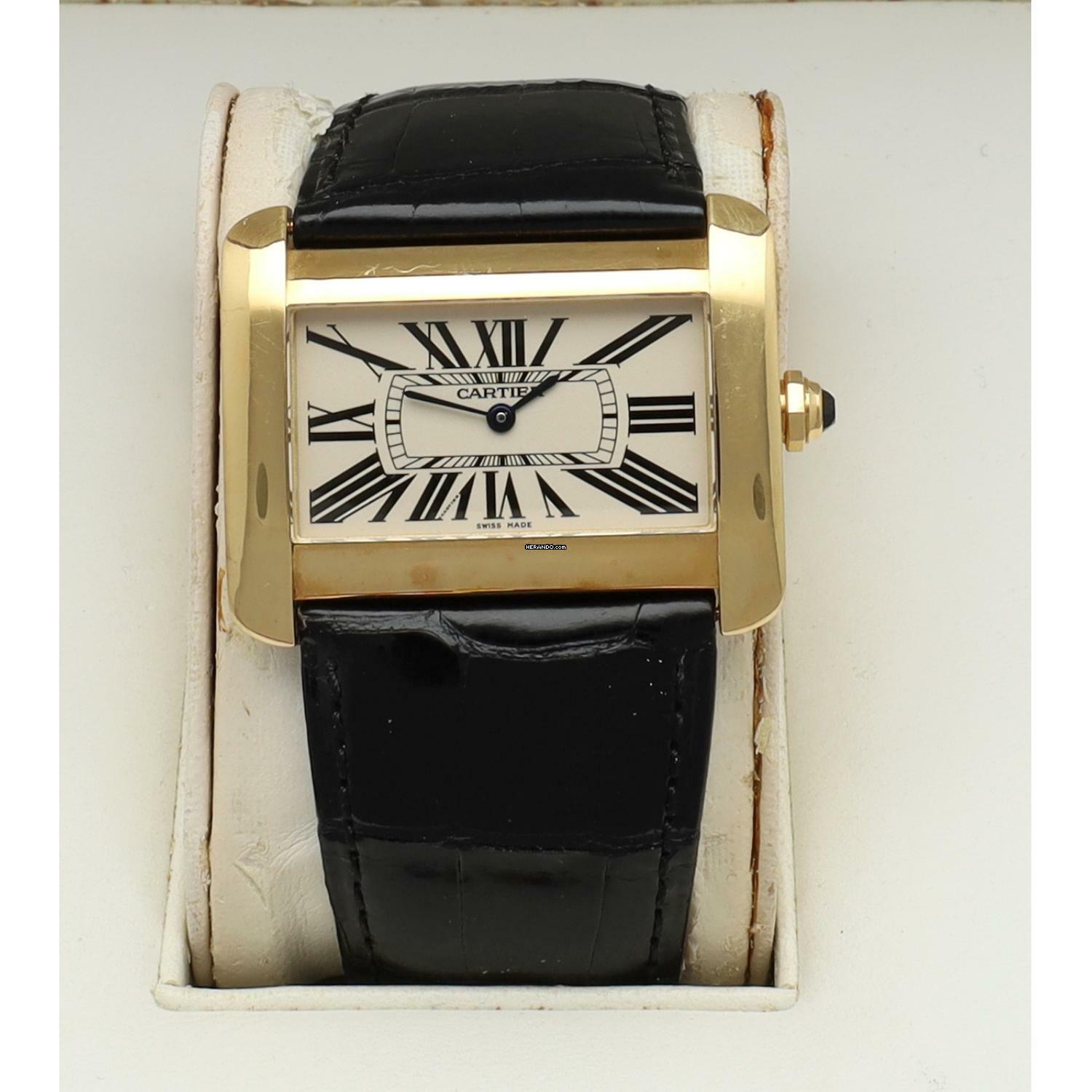 Cartier Tank Divan Gelbgold Ref.2602 in neuwertigem Zustand mit Cartier-Box. Cartier Croco Armband ist wie neu in schwarz.eu Uhr aus den Niederlanden.