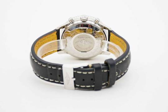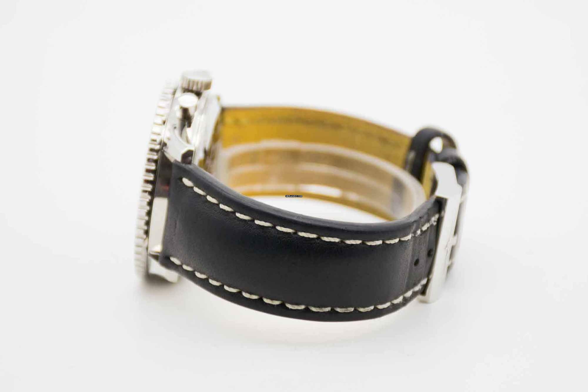 Old Navitimer A13022.1, 41 mm Gehäuse mit schwarzem Tritium Zifferblatt und Breitling Lederarmband mit Breitling Dornschließe. Wunderschöner Old Navitimer mit neuem Service in Breitling Bakelit Box mit sauberem Inlay, Ersatzarmband aus grauem Nylon und Breitling Garantiezertifikat aus 1998. Top gepflegte Pilotenuhr aus erster Hand in perfektem Zustand. Zu unserer Sicherheit lagern wir sämtliche Uhren unseres Bestandes extern im Banksafe, daher bitten wir um vorherige Terminvereinbarung. Old Navitimer A13022.1, 41 mm case with black Tritium dial and black Breitling calf strap with Breitling steel buckle. Perfect vintage Navitimer with brand new service in Breitling Bakelit box with clean inlay, unworn 22 mm nylon strap and Breitling warranty certificate from 1998. The watch comes from the first owner and is in perfect and mint condition. Trades are possible. Please keep in mind that our complete inventory is stored in our bank safe for safety purposes.