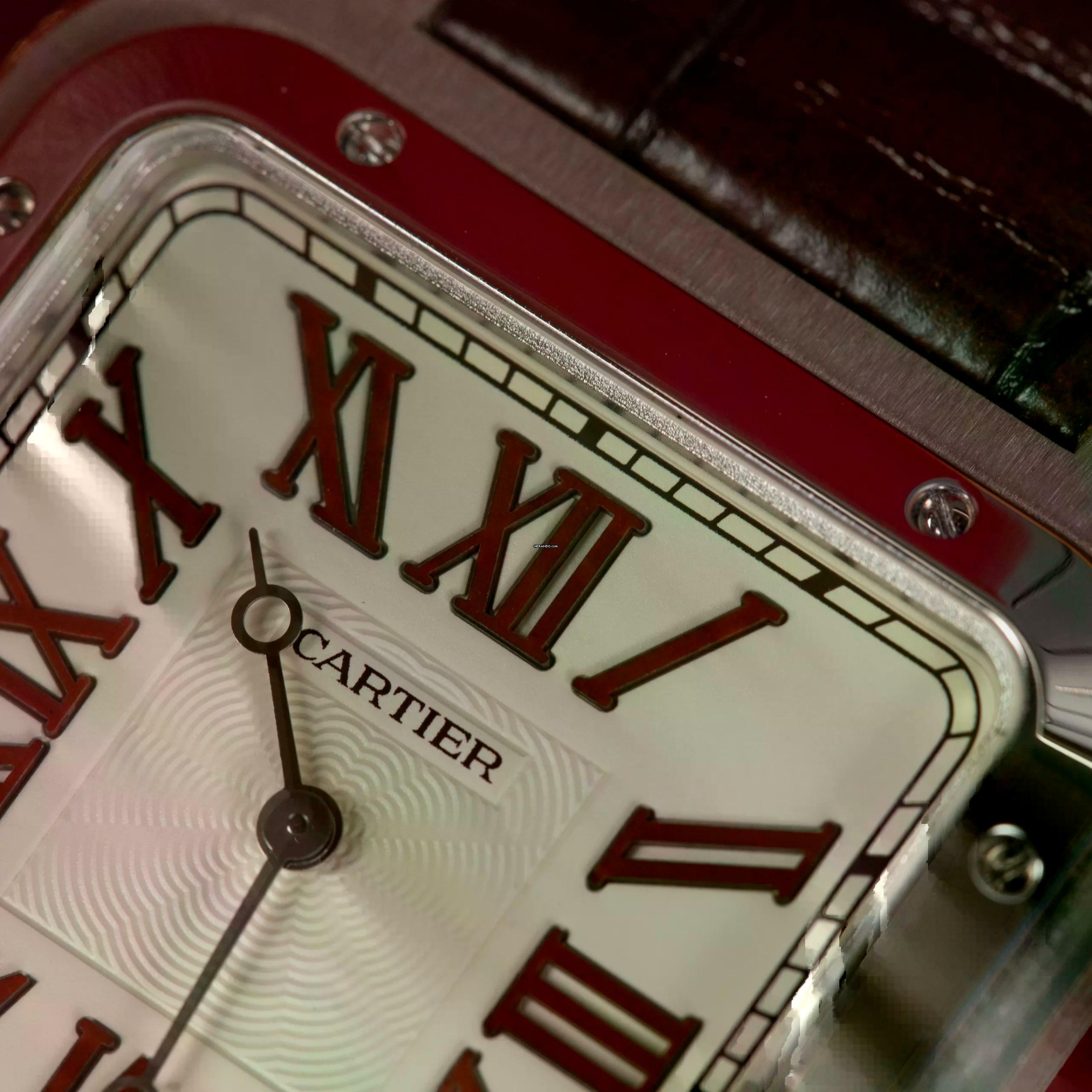 Das Zifferblatt ist mit dem für Cartier charakteristischen silbernen Sonnenschliff versehen und wird von kräftigen römischen Ziffern, blauen schwertförmigen Zeigern und einer perlenbesetzten Krone mit blauem Cabochon geschmückt - ein Markenzeichen der Pariser Eleganz der Marke. Die Santos-Dumont wird von einem hocheffizienten Automatikwerk angetrieben und gewährleistet eine zuverlässige Zeitmessung mit einem schlanken Profil, das sich sowohl für das tägliche Tragen als auch für formelle Anlässe eignet.