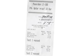 - Wasserdichtigkeit*: ja. Das Prüfprotokoll mit Prüfdruckangabe liegt bei.