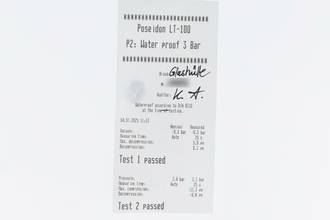 - Wasserdichtigkeit*: ja. Das Prüfprotokoll mit Prüfdruckangabe liegt bei.