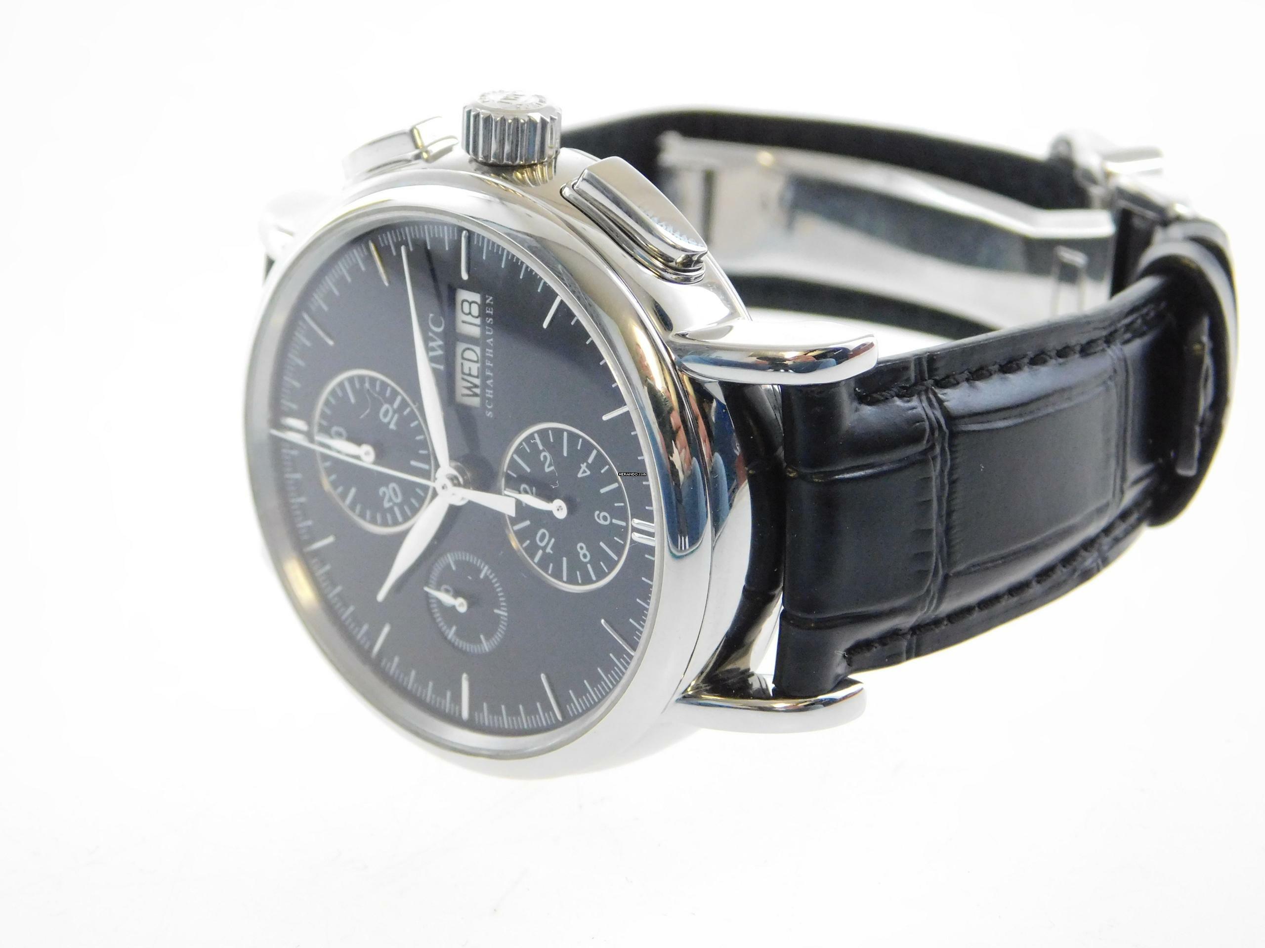 IWC Portofino Chronograph Edelstahl Tag / Datum mit Papieren und Faltschließe