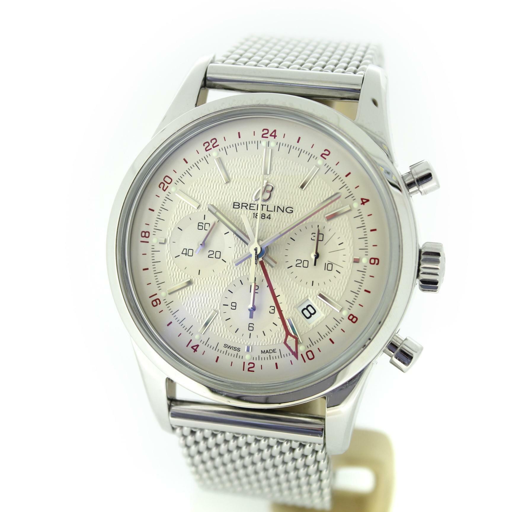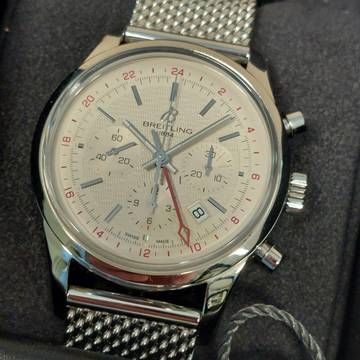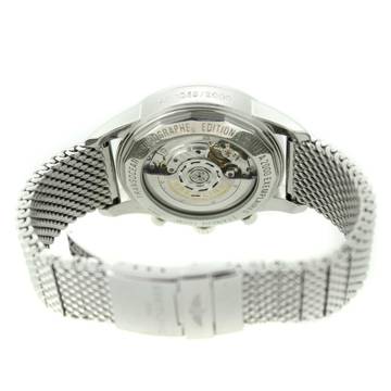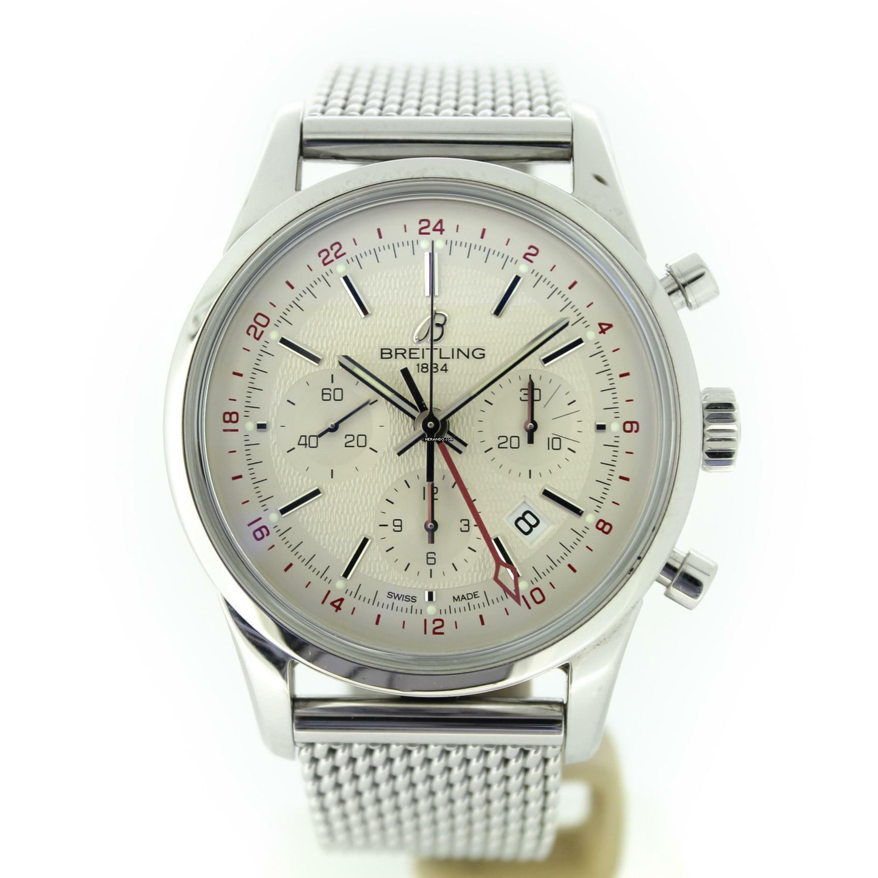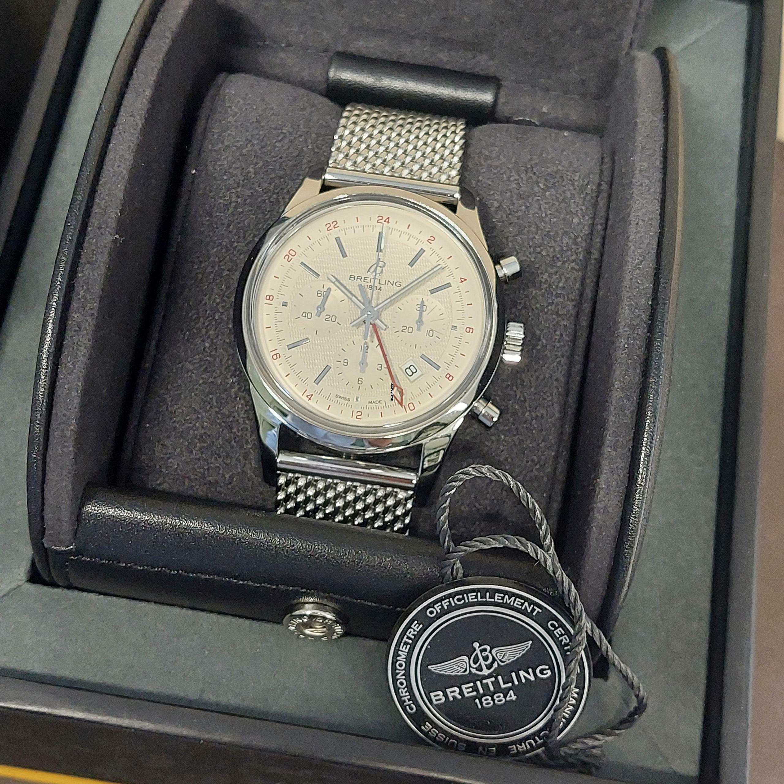 Diese Breitling Uhr verfügt über ein 43 mm Stahlgehäuse. Die Uhr hat ein weißes Zifferblatt. Die Uhr ist mit einem Stahlband ausgestattet.